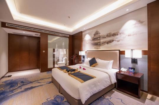 “一枕春梦了无痕,云卷云舒入唐城,推开一扇窗户,便是风情万种”,让您足不出户即可观赏唐宫全貌,领略襄阳山水,品味人生美好。 唐城博达凯瑞国际酒店(襄阳唐城影视基地店)位于襄阳市襄城区中国唐城核心景区入口处,酒店营业面积10000平米,集餐饮、住宿、多功能宴会厅和高端会务于一体。酒店设计以“时尚雅致、简约不凡”的新中式风格为主,拥有温馨别致、现代时尚的客房。