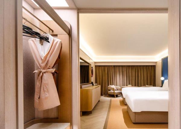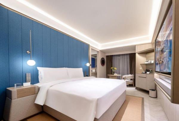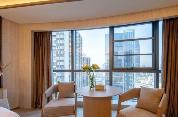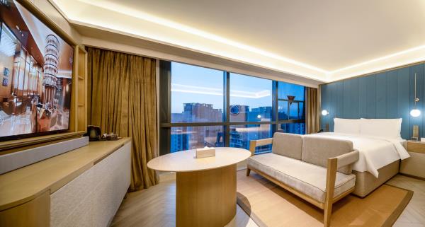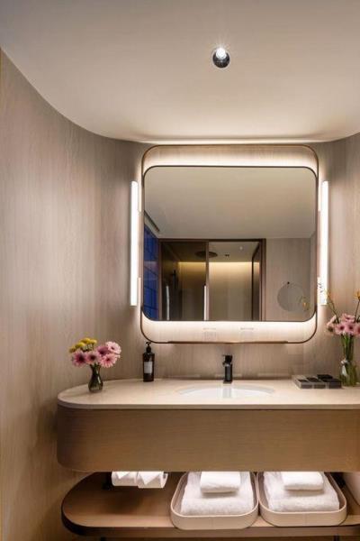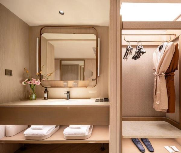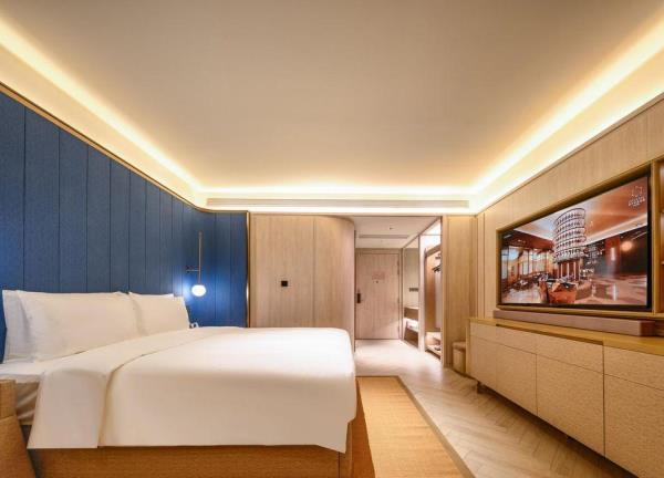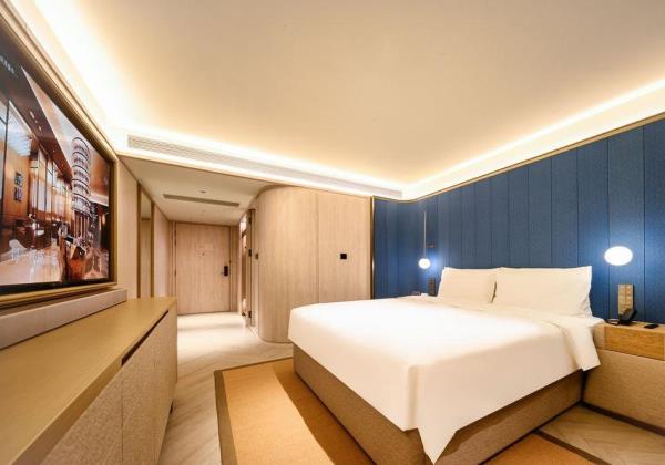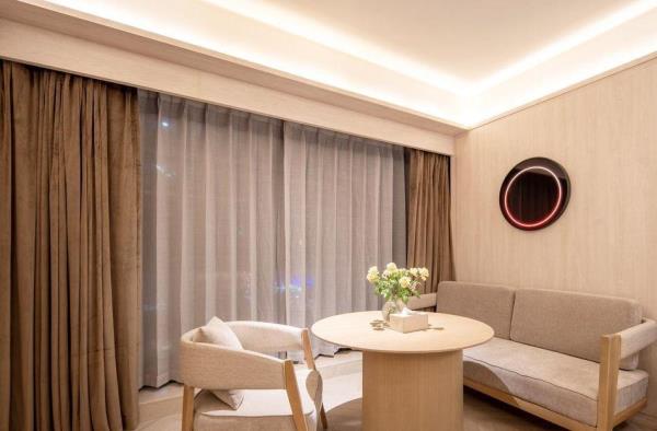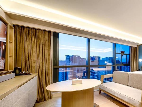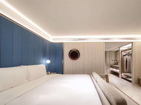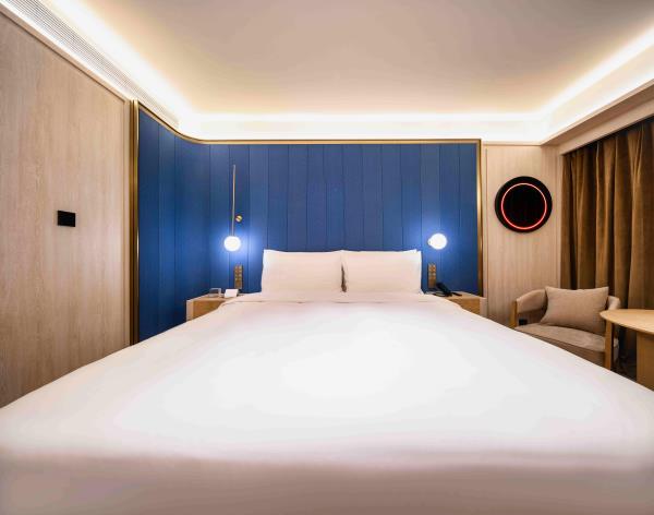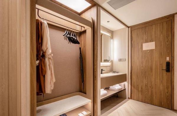 桔子水晶昆明滇池万达广场酒店是华住酒店旗下中高端品牌2.0版本,位于前兴路润城第四大道1栋,地理位置非常优越,自带地下停车场。交通方便,充分满足您的旅游、出差、购物、娱乐、餐饮等需求。“水晶打造的是”回归本真与纯粹,水晶客房专注于空间和材质本身,全屋选用自然的浅木色,搭配流畅优雅的设计线条,沙发与墙壁配色一致,深蓝色/咖啡色墙背景板搭配同色系的窗帘,高级而有质感,墙壁玫红色装饰的点缀,颇具有艺术气息。酒店大堂空间以“威士忌”为主,六芒星无限镜像、威士忌酒柱、爵士乐律动、进可觥筹交错,退可独享小酌。酒店配套中西结合的自助早餐、洗衣房、健身房、会议室、地下停车场、房间配置65寸智能电视(可投屏),蓝牙音箱、电动窗帘、智能马桶、小冰箱、迷你酒水吧、手冲咖啡、香氛晶石,桔子水晶通过简单的元素希望能让每一位客人都能感受到一丝丝的放松及放空,优雅又自在,在这里卸去不必要的多余,以纯净的光折射美丽光彩,感受来自水晶的格调与温暖,瞬间洗去都市的喧嚣的烦恼。