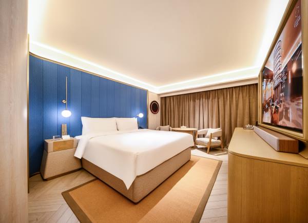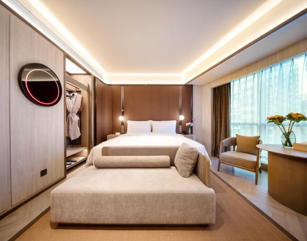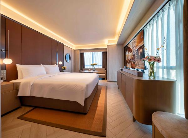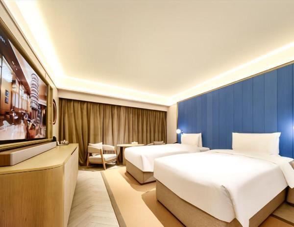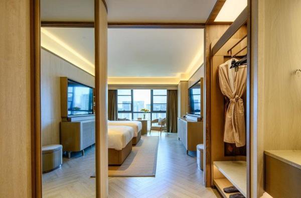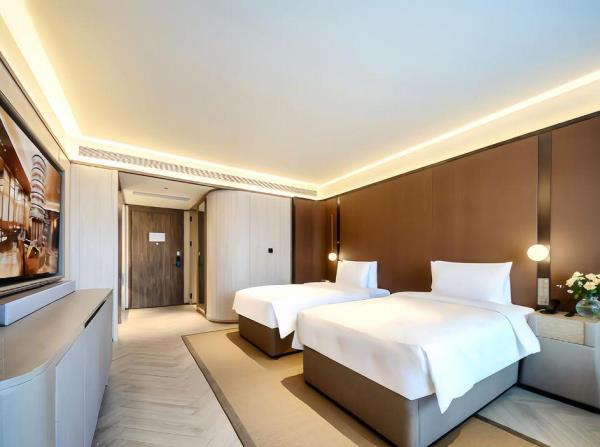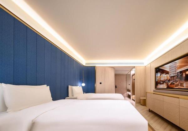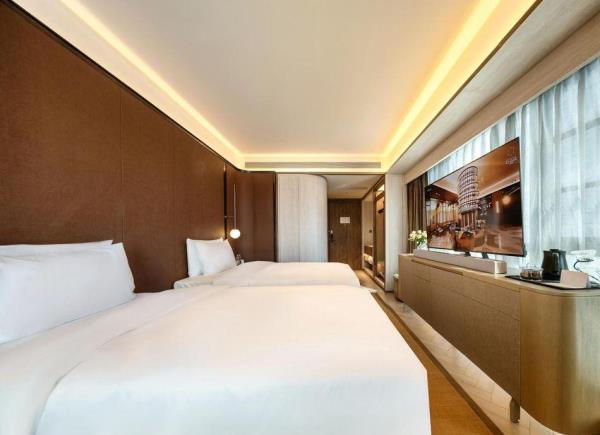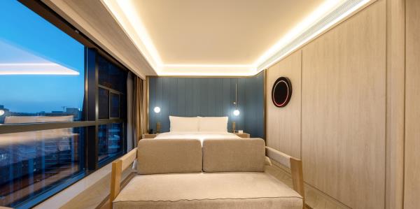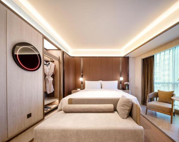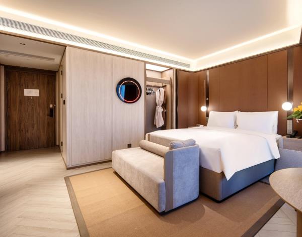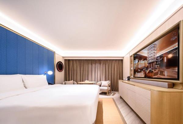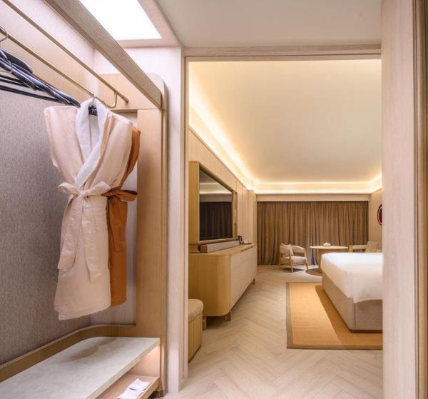 桔子水晶昆明滇池万达广场酒店是华住酒店旗下中高端品牌2.0版本,位于前兴路润城第四大道1栋,地理位置非常优越,自带地下停车场。交通方便,充分满足您的旅游、出差、购物、娱乐、餐饮等需求。“水晶打造的是”回归本真与纯粹,水晶客房专注于空间和材质本身,全屋选用自然的浅木色,搭配流畅优雅的设计线条,沙发与墙壁配色一致,深蓝色/咖啡色墙背景板搭配同色系的窗帘,高级而有质感,墙壁玫红色装饰的点缀,颇具有艺术气息。酒店大堂空间以“威士忌”为主,六芒星无限镜像、威士忌酒柱、爵士乐律动、进可觥筹交错,退可独享小酌。酒店配套中西结合的自助早餐、洗衣房、健身房、会议室、地下停车场、房间配置65寸智能电视(可投屏),蓝牙音箱、电动窗帘、智能马桶、小冰箱、迷你酒水吧、手冲咖啡、香氛晶石,桔子水晶通过简单的元素希望能让每一位客人都能感受到一丝丝的放松及放空,优雅又自在,在这里卸去不必要的多余,以纯净的光折射美丽光彩,感受来自水晶的格调与温暖,瞬间洗去都市的喧嚣的烦恼。