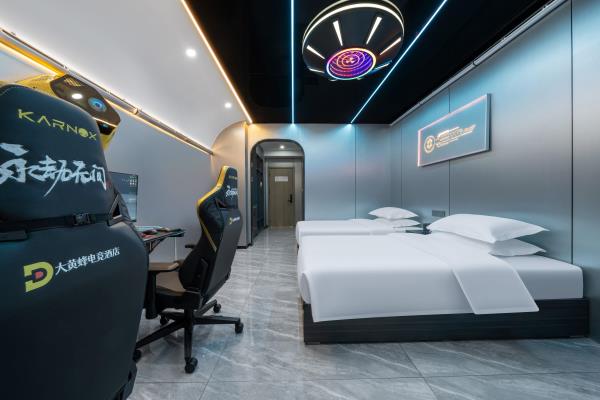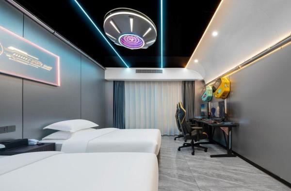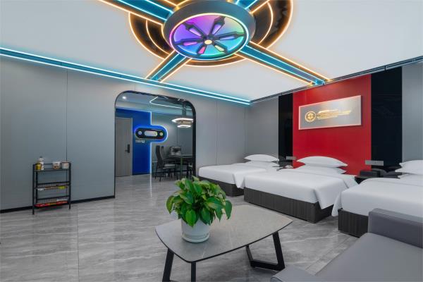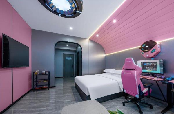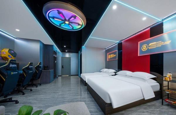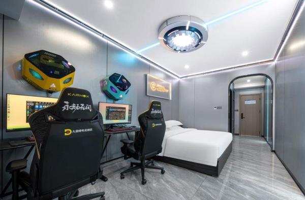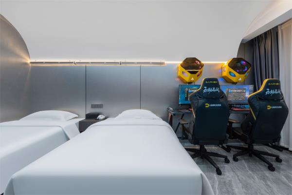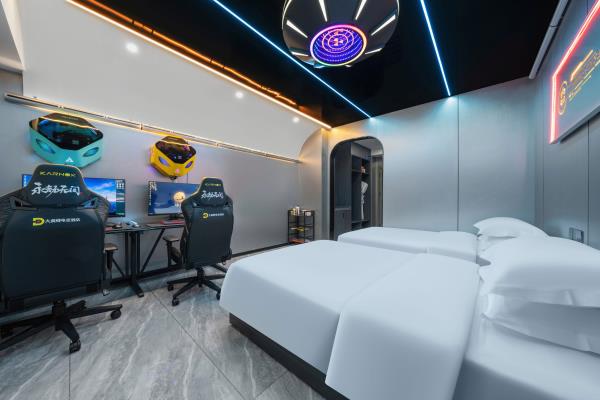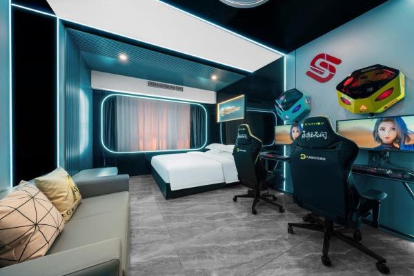 酒店致力于打造荆门电竞行业标杆,采用现代风与科技的结合。结合功能主义和美学逻辑来创造独特的电竞空间,将职业电竞体验与智能影院融入酒店,打造时尚、科技智能场景。 特推出的卓威主题房,每个房间均标配了国际电竞赛事使用的卓威XL系列电竞显示器与外设,拥有全新超电竞玩家在享受舒适入住体验的同时,更能获得专业电竞装备带来的独特电竞体验。 “竞技生活,放飞自我”。你要的精彩,从本店启航!