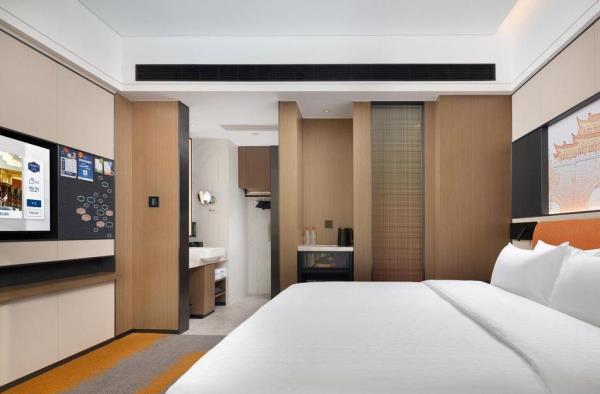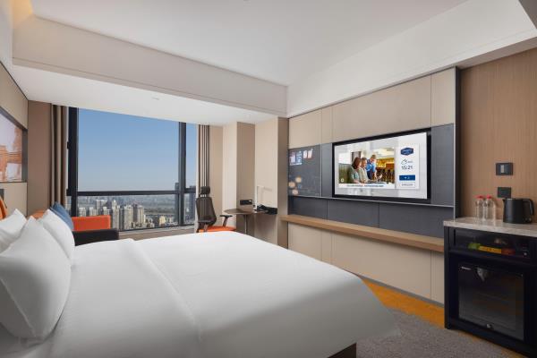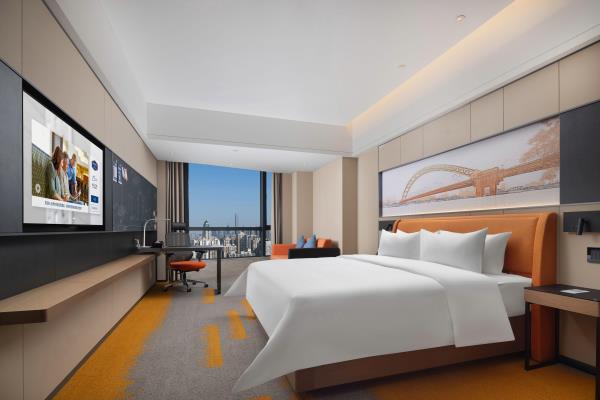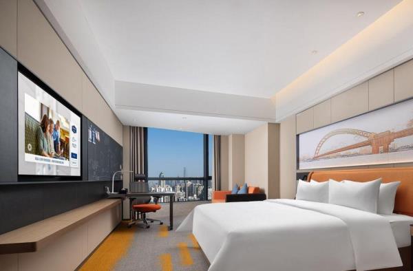 武汉国际广场江汉路希尔顿欢朋酒店坐落于武汉市硚口区武胜路和荣华街交汇处,位于汉口繁华地带,酒店拥有舒适客房,拥有160平米精英会议室面积。酒店便利的交通让出行尽享优越,紧邻地铁站1号线利济北路站、6号线武胜路站,距武汉天河国际机场仅需30分钟车程,距武汉站30分钟车程、距汉口火车站10分钟车程。酒店毗邻凯德广场购物中心、恒隆广场、武汉国际广场,解锁吃、行、游、娱、购,玩转Z时代潮奢范。信步可达武汉国际会展中心。距离武汉国际博览中心也仅需15分钟车程。距离汉口江滩20分钟车程。酒店拥有时尚典雅的客房和套房,位于酒店的20至28楼客房面积从30平米到80平米不等,从客房内可俯瞰城市的繁华景象。所有客房设施完善,风格雅致,让宾客尽享舒适便利,留下难忘的印象。位于酒店的20至28楼客房面积从30平米到80平米不等,从客房内可眺望城市景观。