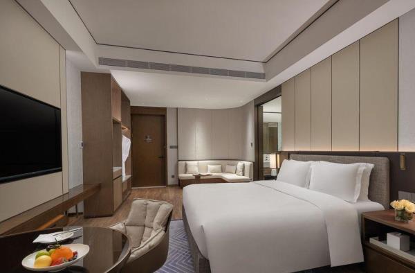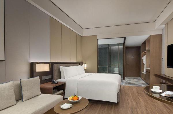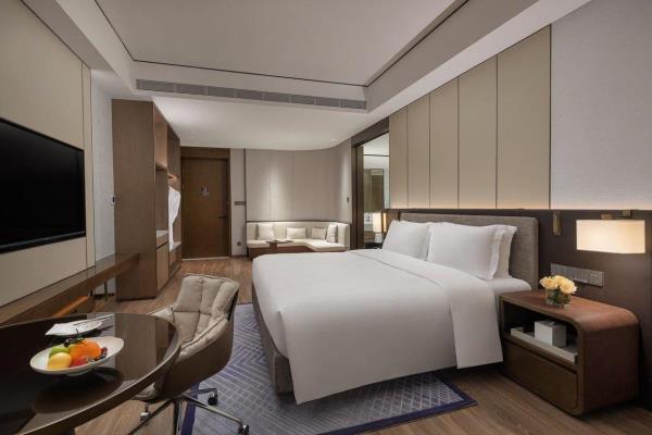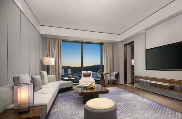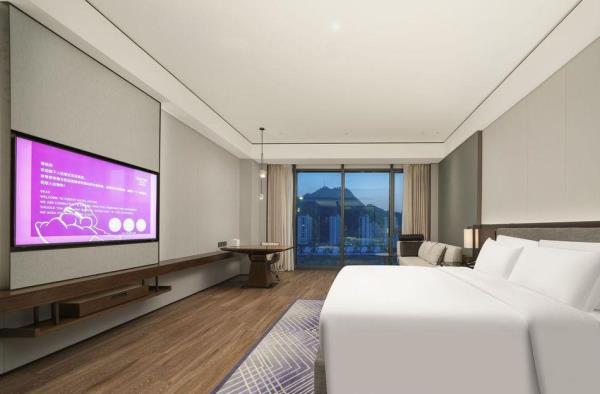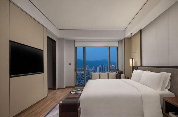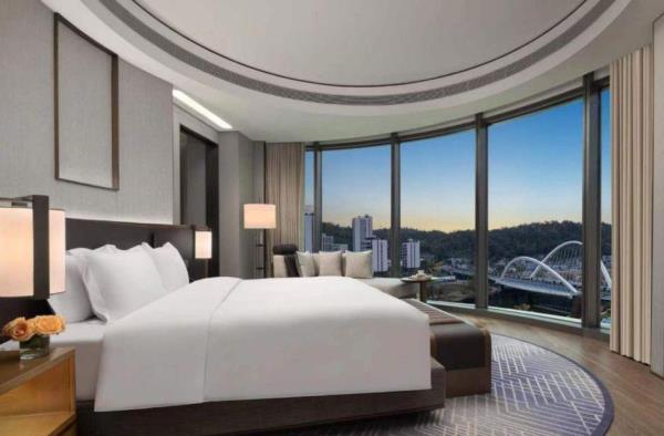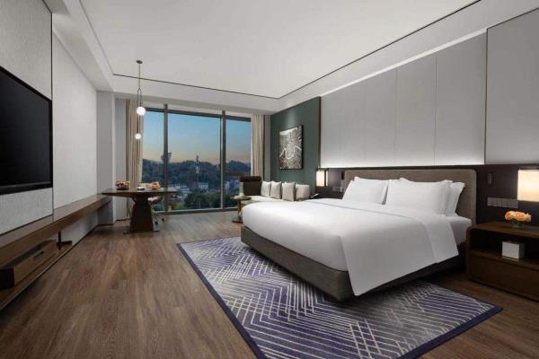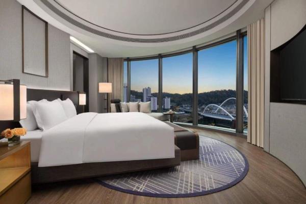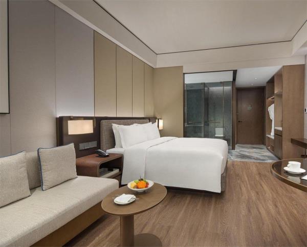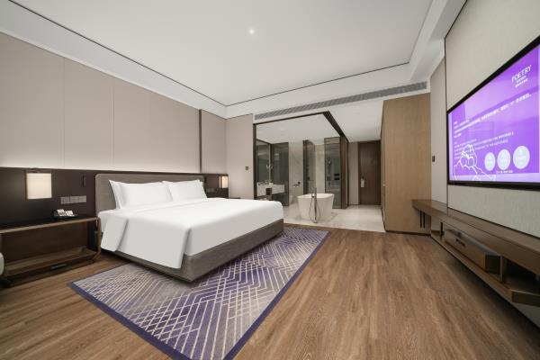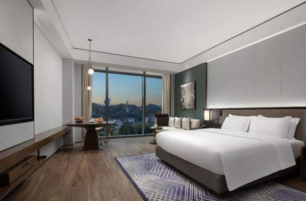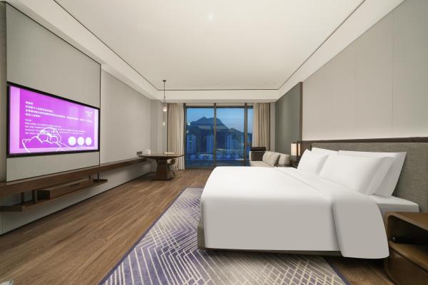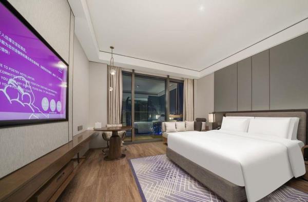 缙云宝廷酒店隶属浙江万地旅游集团旗下全新诠释“廷”系列品牌之高端酒店。酒店地处“黄帝缙云,人间仙都”美誉的丽水市缙云县,地理位置优越,位于缙云县鼎湖南路和好溪路的交汇处,共计415个车位(包含地下52个充电车位),充分保证住店宾客免费停车和电车充电需求。步行可达缙云站、滨江公园、缙云博物馆;毗邻仙都风景区(国家5A级景区),距离仙都观、高铁缙云西站仅15分钟车程。酒店设计理念汲取了缙云县城独特文化底蕴,融合了山水风光,旨在为宾客打造现代奢华与地方文化交融的魅宝。酒店设有542间客房,全部采用全景落地飘窗设计,视野开阔,让您在客房内饱览城市美景。客房配备TOTO、DURAVIT卫浴设施、美国金可儿床垫、60寸夏普4K液晶电视、康乃馨高端布草,打造宝廷天梦之床;酒店左侧鼎湖大桥畔,碧波荡漾,清风徐来。右侧的万地广场商业综合体,灯火璀璨、活力四溢。酒店拥有2000平方米、层高8米无柱式宝廷宴会厅,12个多功能宴会及会议室,一站式满足大型婚宴、展会及商务会议需求。此外300个餐位全⽇制餐厅、14个中餐包间和⼤堂吧,健身房及室内恒温泳池,为宾客提供多样选择。缙云宝廷酒店致力于“到缙云、宿宝廷,不辜负每一程相遇”之服务愿景,努力为宾客创造愉悦且难忘之居停体验。缙云宝廷酒店,热忱期待您的光临!