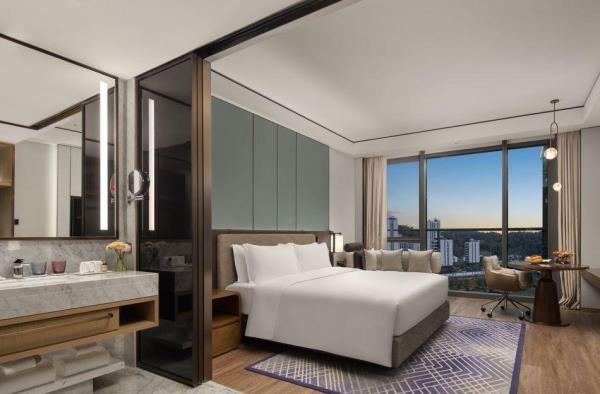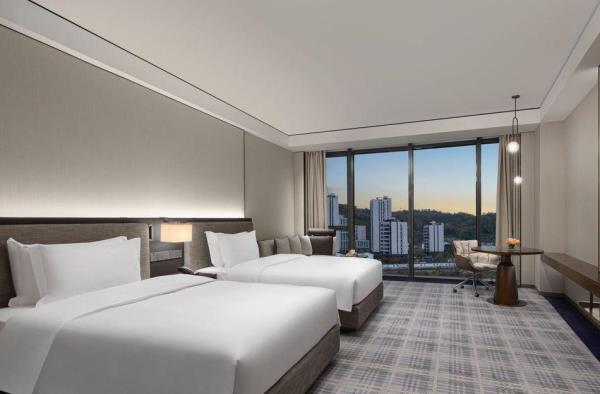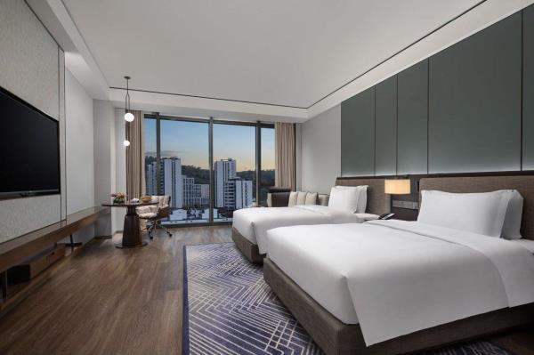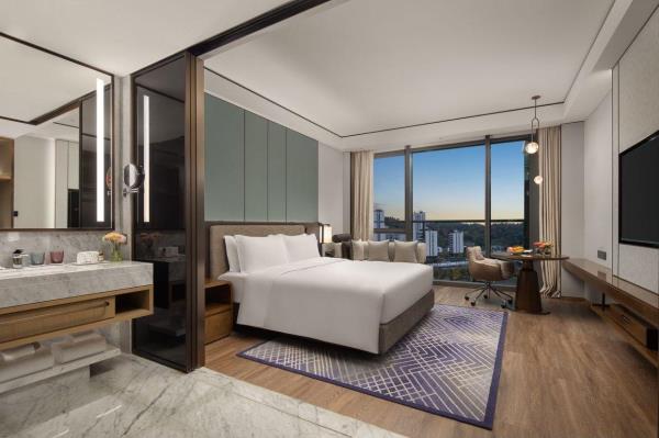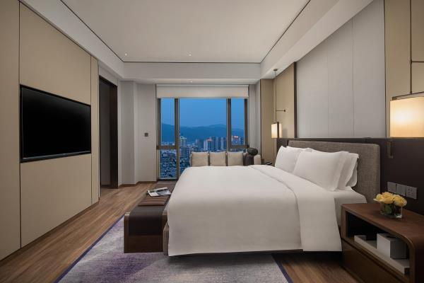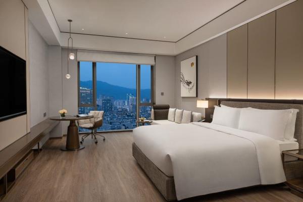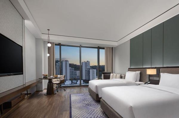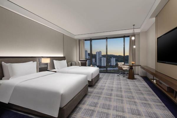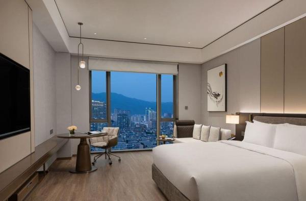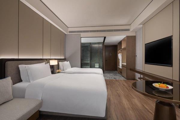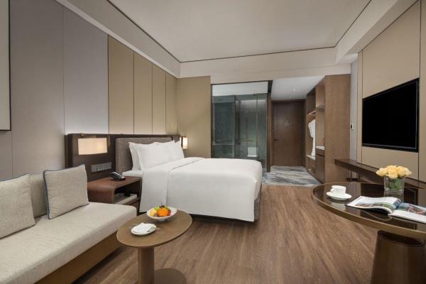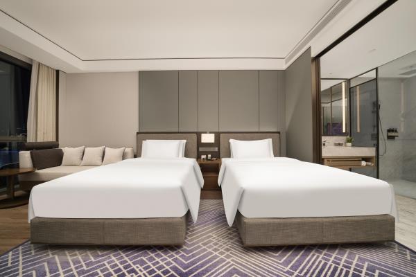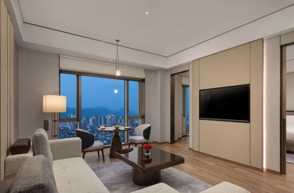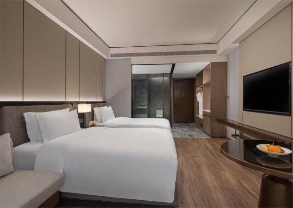 缙云宝廷酒店隶属浙江万地旅游集团旗下全新诠释“廷”系列品牌之高端酒店。酒店地处“黄帝缙云,人间仙都”美誉的丽水市缙云县,地理位置优越,位于缙云县鼎湖南路和好溪路的交汇处,共计415个车位(包含地下52个充电车位),充分保证住店宾客免费停车和电车充电需求。步行可达缙云站、滨江公园、缙云博物馆;毗邻仙都风景区(国家5A级景区),距离仙都观、高铁缙云西站仅15分钟车程。酒店设计理念汲取了缙云县城独特文化底蕴,融合了山水风光,旨在为宾客打造现代奢华与地方文化交融的魅宝。酒店设有542间客房,全部采用全景落地飘窗设计,视野开阔,让您在客房内饱览城市美景。客房配备TOTO、DURAVIT卫浴设施、美国金可儿床垫、60寸夏普4K液晶电视、康乃馨高端布草,打造宝廷天梦之床;酒店左侧鼎湖大桥畔,碧波荡漾,清风徐来。右侧的万地广场商业综合体,灯火璀璨、活力四溢。酒店拥有2000平方米、层高8米无柱式宝廷宴会厅,12个多功能宴会及会议室,一站式满足大型婚宴、展会及商务会议需求。此外300个餐位全⽇制餐厅、14个中餐包间和⼤堂吧,健身房及室内恒温泳池,为宾客提供多样选择。缙云宝廷酒店致力于“到缙云、宿宝廷,不辜负每一程相遇”之服务愿景,努力为宾客创造愉悦且难忘之居停体验。缙云宝廷酒店,热忱期待您的光临!
