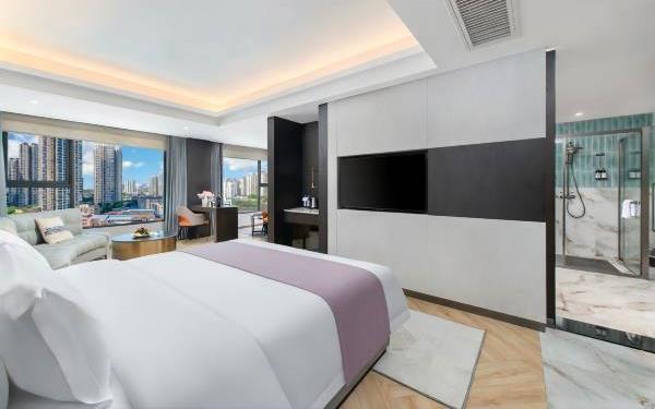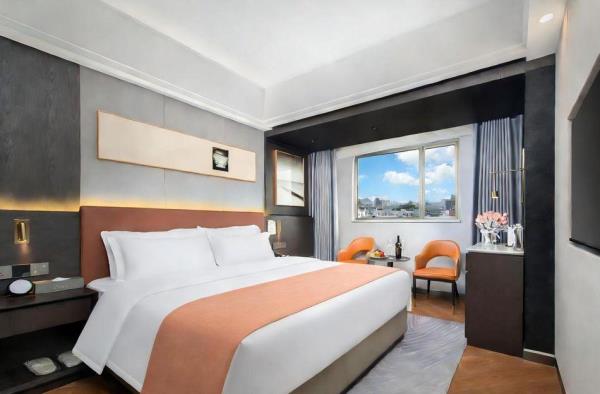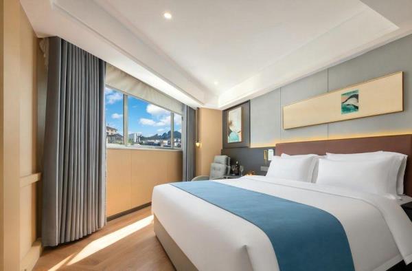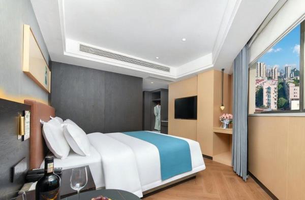 本店以纯白色的南亚风格融合阿拉伯风格建筑于一体,舒适、高挑新潮;浅蓝色水景仿佛置身于海滨,椰树婆娑,微风佛面,别具一格,让您在舒适的环境中尽享美好的旅途。 酒店位于柳州市鱼峰区箭盘路东一巷2号,交通便利,能享受差旅的舒适便利;距离城中万达与万象城、窑埠方便快捷;周边有蟠龙山公园与白岩山公园,您可以在这里尽情品味柳州特色文化,探索周边的风景名胜。 酒店拥有各类客房,包括套房、商务房、标准间以及特色的宠物友好房。每间客房都配备有现代化的设施,如高速wi-fi、液晶电视、智能管家等。此外,酒店还提供24小时前台服务、行李寄存、洗衣服务、停车等。以先进的配套设施以及热情周到的服务给宾客带来舒适、便捷的旅居体验。 酒店还配备有新氧系统,能通过设备向室内空气中添加一定比例的氧气,以提高室内空气的含氧量,将室外新鲜空气引入室内,同时将室内污浊空气排出来,来保持室内空气的新鲜度和质量,可以有效地降低室内空气中的污染物、病毒等有害物质的浓度,促进人体新陈代谢、缓解疲劳等作用,为每一位顾客提供更加舒适的居住环境和更加健康的生活方式。 酒店11层餐厅是古典雅致与现代时尚的结合,提供丰富的餐饮选择,中西结合的自助早餐让您在轻松的氛围中享受美味的饮品和特色小吃。 酒店拥有设备齐全的健身房和会议室,让您在旅途中保持身体健康。我们还为携带宠物的旅客提供专属房型与设施,让您的旅行更加轻松愉快。 健康有氧好睡眠,出差旅游选本店。 本店欢迎您的光临!
