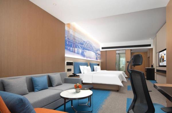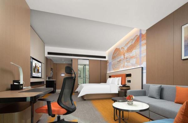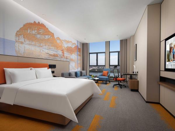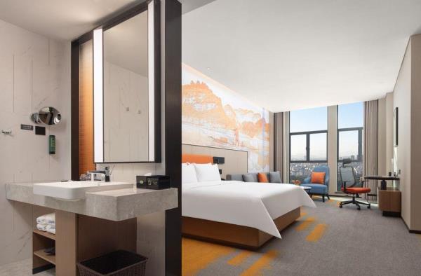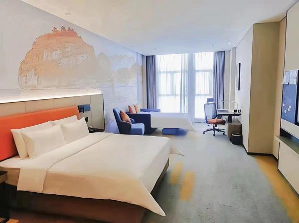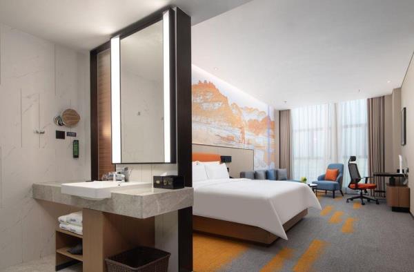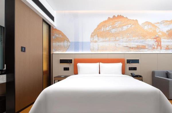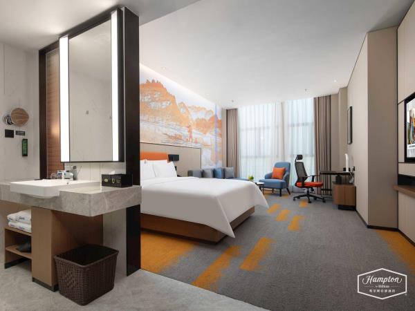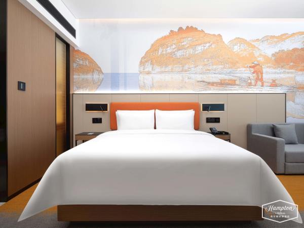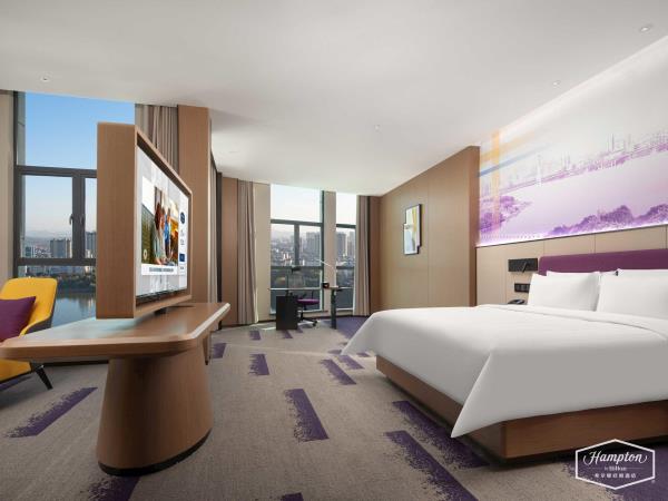 希尔顿欢朋(Hampton by Hilton)是希尔顿旗下酒店品牌之一。希尔顿欢朋酒店旨在为客户提供友善、可靠、关怀、周全的服务。 鹰潭希尔顿欢朋酒店位于鹰潭市月湖区旺埠路鹰潭大厦,地理位置方便,周边有市民广场及天虹商场,步行仅5分钟;距离鹰潭北站7公里,车程15分钟;距离鹰潭站2公里,车程10分钟。距离龙虎山风景区20余公里,龙虎山是中国第八处世界自然遗产,国家AAAAA级旅游景区。酒店坐落于鹰潭信江旁,信江是江西省境内较大河流之一,鄱阳湖水系五大河流之一。在临江的房间即可欣赏日出江面、江河落日的秀美景色,给您带来良好的视觉感受。 鹰潭希尔顿欢朋酒店多功能大堂集欢迎区、聚会区、休闲区、商务区于一体。客房采用美国“Hampton Bed”标准的 Serta 双专利床垫和生态认证床上用品,打造云端甜梦体验。酒店26楼设有早餐厅、乐动健身房、自助洗衣房及精英会议室,为您提供安心、舒适的入住体验。客房沐浴用品使用Peter Thomas Roth(彼得罗夫),是美国医学护肤领域的殿堂级品牌。客房采用智能房控面板对客房门牌、温控、灯光等进行“六大情景模块 ”控制,一键式全关模式操作简单。 我们的愿景是让客人的旅程因为欢朋的陪伴而更加美好,鹰潭希尔顿欢朋酒店全体伙伴期待您的光临。