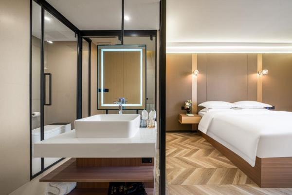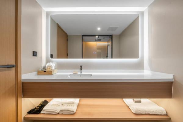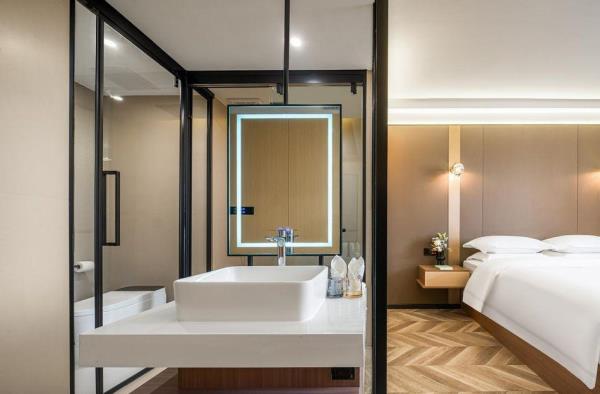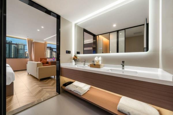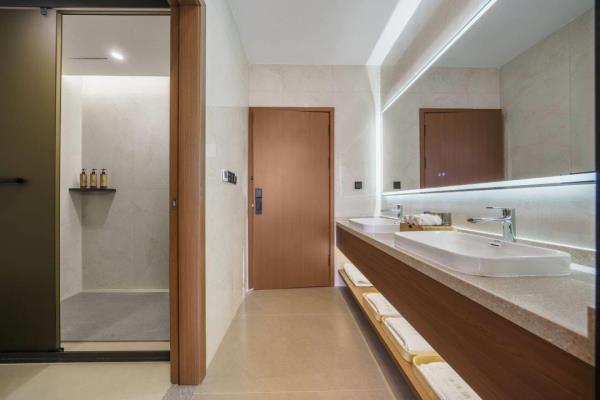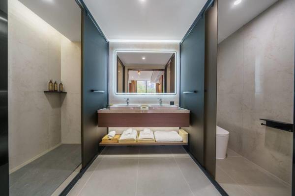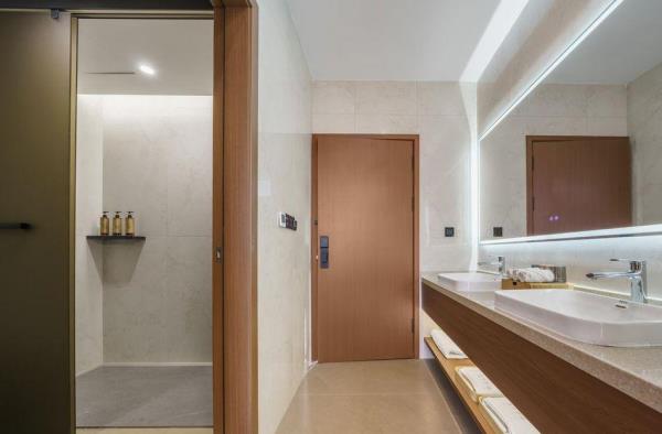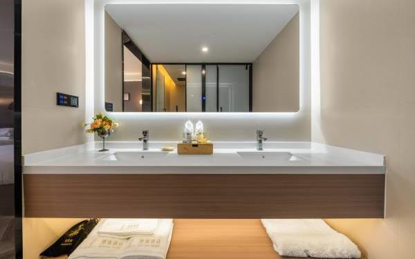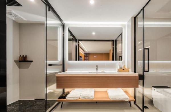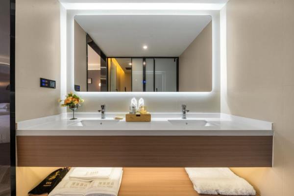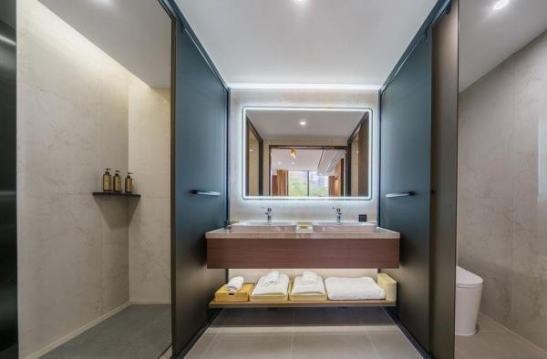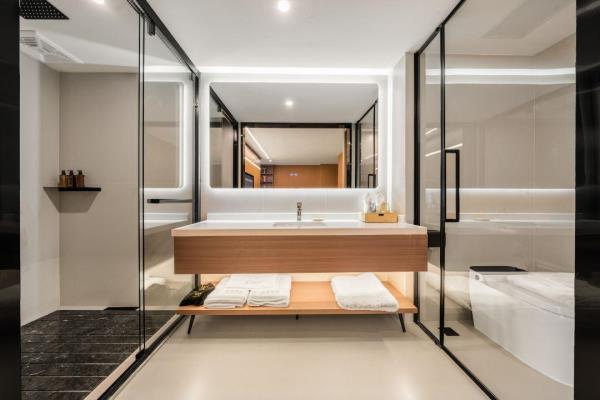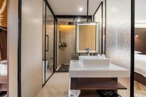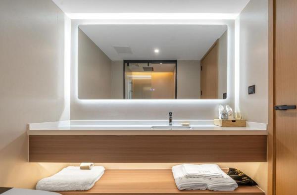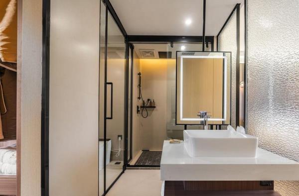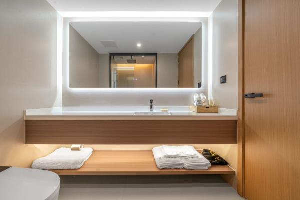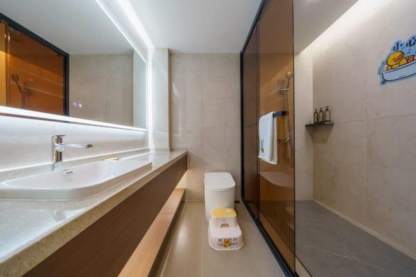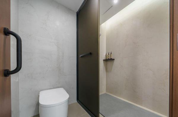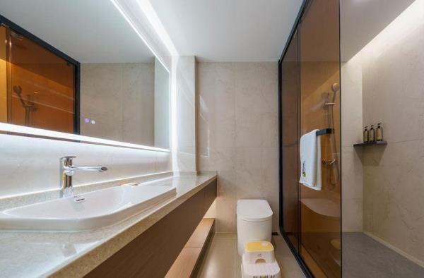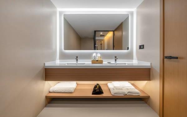 卫浴设施:私人卫生间、毛巾、拖鞋、24小时热水、浴衣、私人浴室、浴巾、雨淋花洒喷头、智能马桶。仅部分房间具备:、淋浴、吹风机