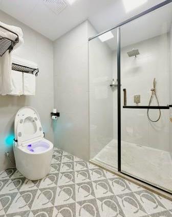 卫浴设施:淋浴、私人卫生间、浴巾、毛巾、拖鞋、24小时热水、雨淋花洒喷头、私人浴室、智能马桶