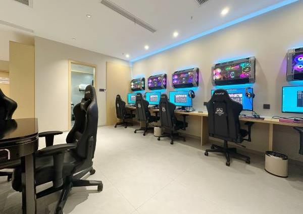 电竞设施:电竞鼠标、电竞椅、机械键盘、电竞耳机。仅部分房间具备:、电竞显示器、电竞电脑、电竞显卡