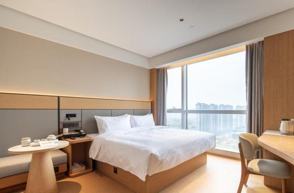 少小离家老大回,乡音无改鬓毛衰;不知细叶谁裁出?二月春风似剪刀;莫言春度芳菲尽,别有中流采芰荷。酒店坐落于杭州市萧山区蜀山街道。这里是唐朝著名诗人“饮中八仙”贺知章的故里。酒店东面毗邻南江公园,西面邻近“西湖姊妹湖”-湘湖,附近有大型综合性主题公园(杭州乐园、极地海洋世界)从酒店门口二号线朝阳站(E出口)出发,经钱江世纪城,过杭州武林门,达终点良渚站;是您商务、旅游出行的上佳选择。