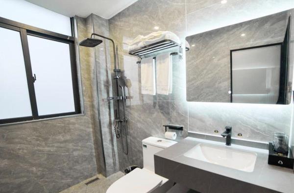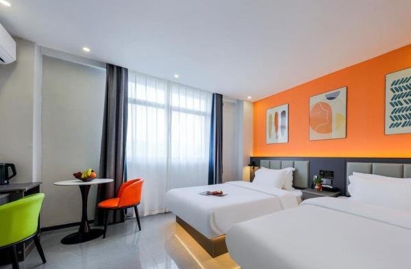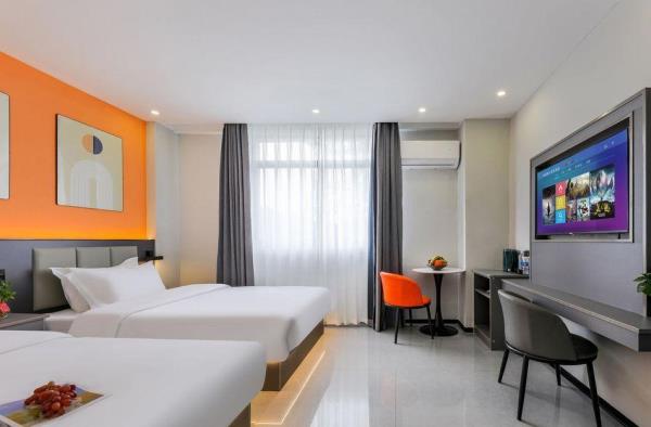 酒店位于揭阳市榕城区登岗镇登峰北路28号,距离潮汕机场、揭阳机场高铁站仅需5分钟车程,距离潮汕高铁站仅需15分钟车程。酒店内有自主经营便利店,以及周边靠近大型超市,小吃夜宵综合街,各类菜系饭店、大排挡等。酒店设有大型停车场,客房配备独立WI-FI,智能网络电视,功夫茶具,独立24小时热水淋浴等。床垫选用加厚乳胶,保护颈椎,助您一晚安眠,床褥选用裸棉四件套,原生态无刺激自然品质。酒店旨在为宾客提供便利和贴心的服务,您的满意是我们的诚意!