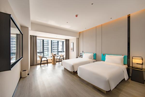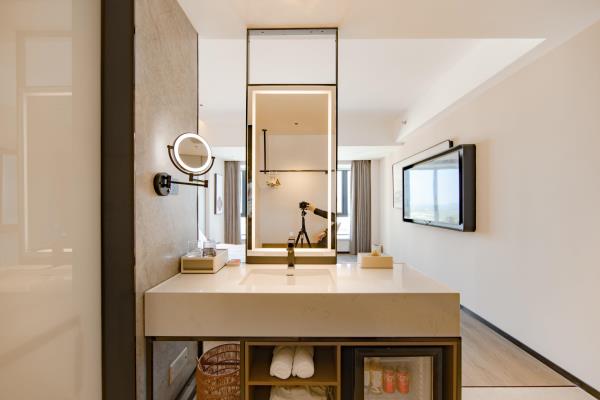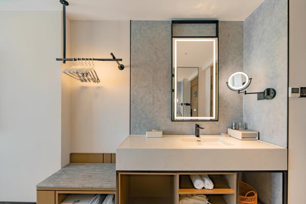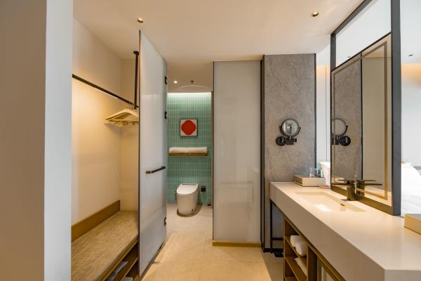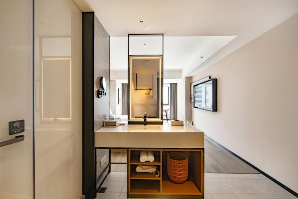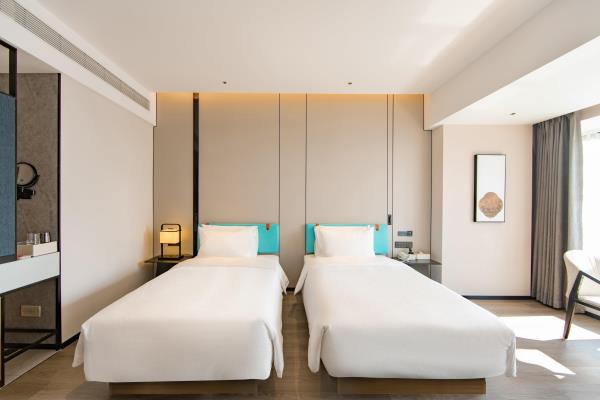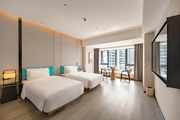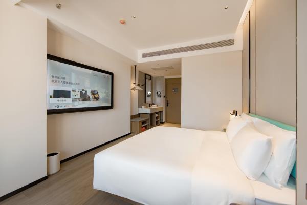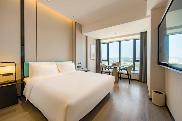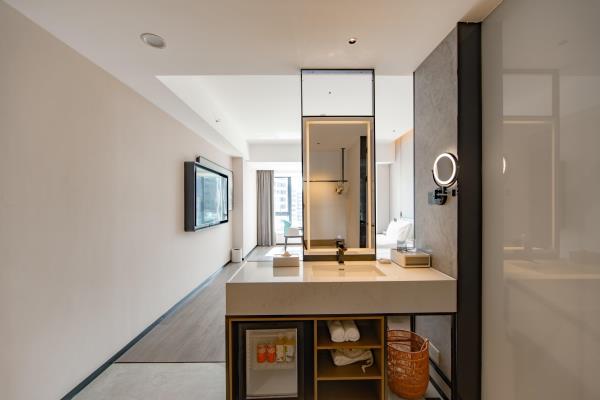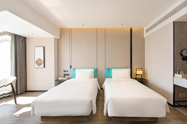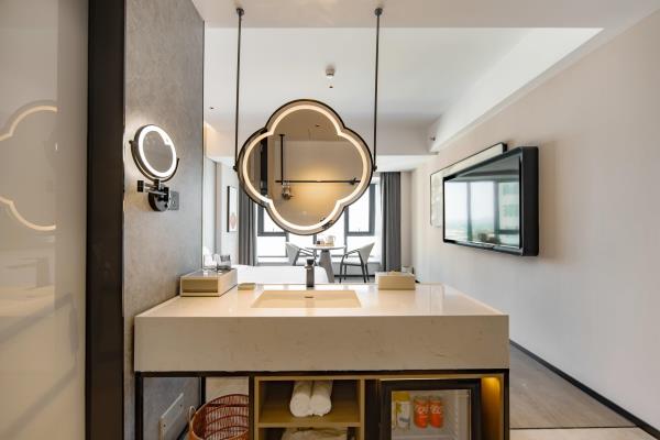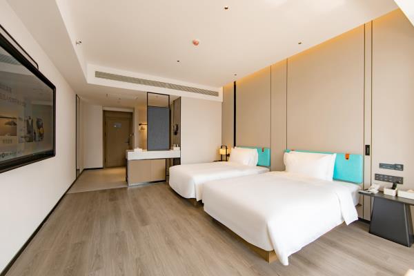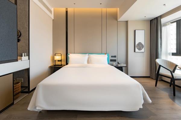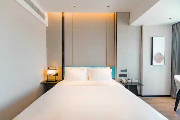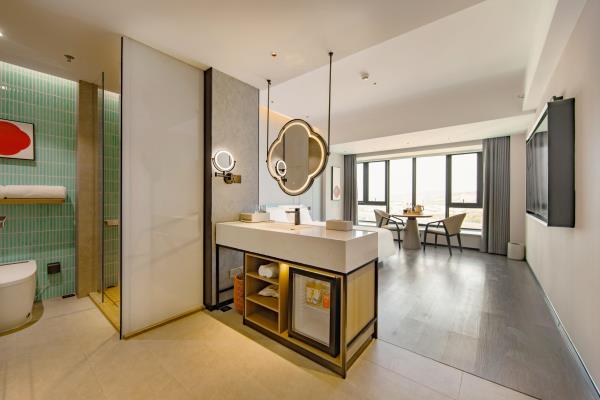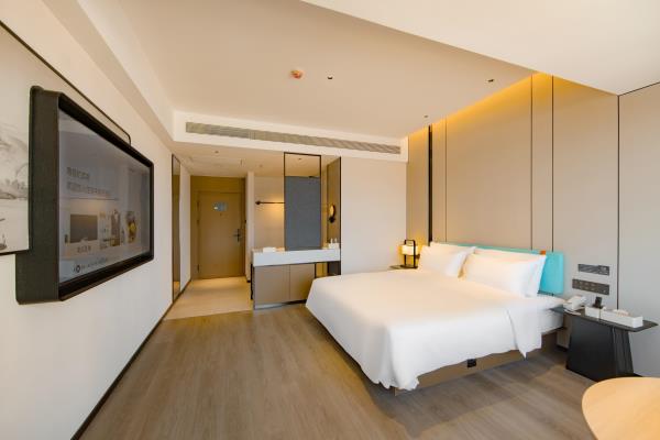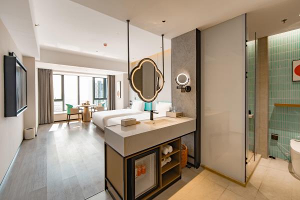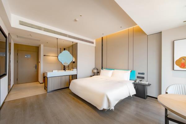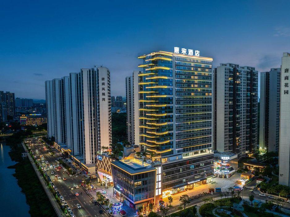 2023年唐商集团推出了旗下中高端酒店品牌——唐宋酒店。唐宋酒店(潮州饶平店)坐落于饶平县的唐商商业综合中心,这座商业综合体是饶平县集休闲购物、美食娱乐、住宿于一体的全方位立体式生活体验中心。酒店拥江而居,视野开阔,以唐宋雅韵为特色,客房空间整体以现代简约的手法呈现,通过对传统园林符号及宋代汝窑色彩等元素提取及演变,通过当代的材质和表现手法打造一个符合当下审美的体验空间。酒店客房内置亲子套房、大床房、双床房以及套房。酒店客房实现了智能化,如自动窗帘、智能马桶、机器人服务等,为客人提供了更为便捷和舒适的生活体验。此外,酒店还配备了健身房、洗衣房、早餐厅和游泳池等配套设施,为客人提供了全方位的服务。酒店致力打造一个融合了现代与传统的文化交流场所。在这里,客人不仅能享受到高品质的住宿服务,还能感受到唐宋文化的独特魅力。无论是那开阔的江景,还是那充满古韵的客房设计,都让人仿佛置身于千年之前的唐宋时期。