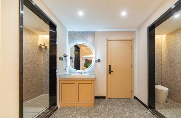 卫浴设施:淋浴、私人卫生间、毛巾、拖鞋、浴室化妆放大镜、24小时热水、私人浴室、浴巾、智能马桶。仅部分房间具备:、吹风机