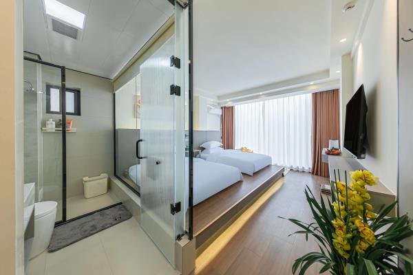 卫浴设施:浴巾、智能马桶、私人卫生间、毛巾、拖鞋、浴室化妆放大镜、24小时热水、私人浴室。仅部分房间具备:、吹风机