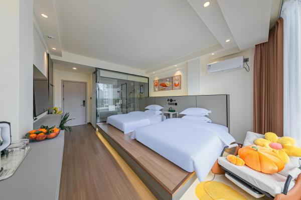 客房设施:电热毯、遮光窗帘、手动窗帘、备用床具、空调。仅部分房间具备:、空气净化器、自动窗帘