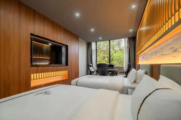 便利设施:WIFI、空调、暖气、地暖、保险箱、麻将桌、沙发、洗衣机、熨斗/烫衣板、电风扇、空气净化器、220V电压插座、多种规格电源插座、自动窗帘、单一规格电源插座、蚊帐、电热毯、书桌/工作区、餐桌、饮水机、桌游、跑步机