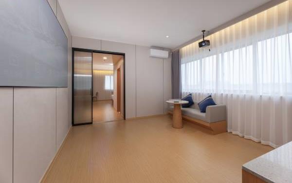 客房设施:暖气、遮光窗帘、自动窗帘、床具:毯子或被子、空调
