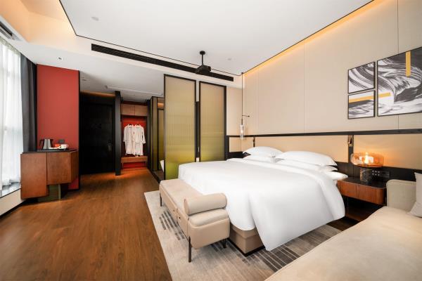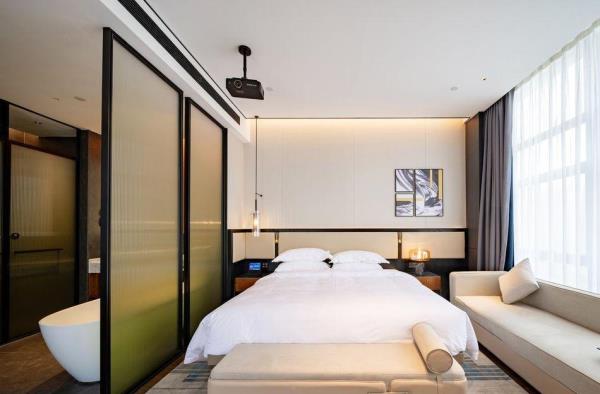 酒店是江门柏丽管理公司精心打造的高端品牌,酒店位于江门蓬江区滨江体育中心附近(约10分钟车程),周边交通发达,距龙湾高速路口(约15分钟车程),距江门大道快速公路(约2分钟车程),地处商业密集中心附近有江门万达广场、汇悦大融城、海逸城邦、大昌超市、永利超市等商业簇群。周边范围内有篁庄美食街、五洞牛肉、园山湖公园、叱石风景区、杜阮凉瓜田园综合体、白水带风景名胜区、江门儿童公园、江门人才岛潮头中央公园等知名旅游景点。酒店采用时下流行的新中式装修设计风格,客房区域设置在2-8层,全部房间均可一览蓬江城区城央美景,酒店设有自助洗衣房、自助早餐餐厅、健身房、大型停车场,私人管家、24小时安保等服务,我们酒店全体员工期待您的光临!