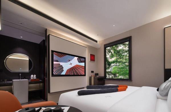 【朵兰达中国商务潮牌酒店开创者 潮而不花 潮而不俗】全国门店近60家,门店遍布13个城市,市场定位一线、新一线及潮流前沿城市,秉承一城一设计、一店一大堂的设计理念,旗下品牌:朵兰达系列&美漾系列!朵兰达M+酒店(五一广场IFS国金中心店)位于长沙市芙蓉区育英街28号,黄兴广场地铁站、五一广场双地铁口步行可达,酒店毗邻IFS国金中心、五一广场等长沙核心商圈,集休闲、旅游、购物、饮食、打卡于一体的黄兴路步行街下楼可达,周围环绕橘子洲、坡子街、杜甫江阁等部分步行可达旅游热门景点!酒店公区配备24小时烘洗房、24小时健身房、会议室、餐厅、景观露台(面朝IFS国金中心),客房分为榻榻米智能投影房、智能语音大床房、智能语音双床房、豪华浴缸房,配备全屋智能语音控制、电动窗帘、智能马桶、零压床垫与记忆棉枕、迷你吧和小冰箱、化妆镜以及全身镜,力求给每位贵宾最舒适的睡眠享受。包含24小时管家、24小时不限量畅饮、下午茶、晚安甜品、早餐、百项服务等入住礼遇。在这里贵宾能真正体会:细细刷牙、慢慢洗澡、好好睡觉、静静生活!欢迎来到我们的世界,我们等待着您!