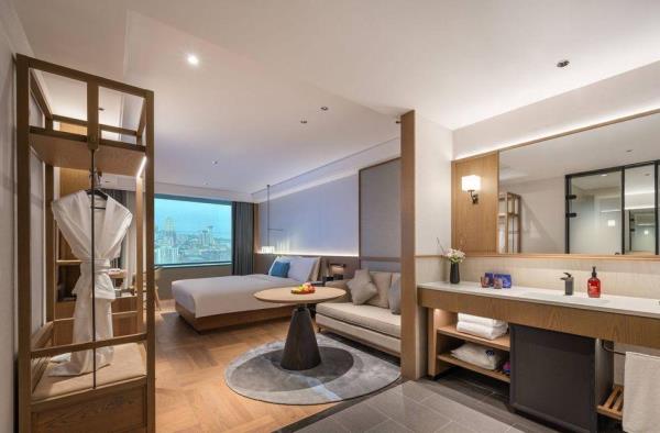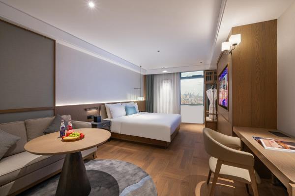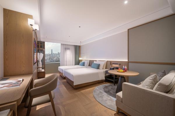 酒店位于武汉市江汉区中山大道818号平安大厦28-31层,拥有百米高空客房,视野无敌,可观城景、江景等;酒店隶属于华住酒店集团,是华住旗下中高端品牌。同时酒店门口即为武汉地铁2号线及6号线交汇点-江汉路站H、J出口,公交站线集聚,交通便利,四通八达。酒店位于江汉区核心区域,紧邻HAPPY站台、武汉水塔、大汉口美食街、王府井百货、大洋百货、江汉路步行街等,周边商场、美食街及音乐轻吧遍布。酒店为您提供具有漫心特色的复合大堂,兼具欢迎区、休闲区、商务区、驻唱区,满足您多场景的使用需求。客房采用极简主义设计,配备清新洋甘菊洗护用品、热带雨林花洒、电加热马桶、情景灯光、巴马铂泉等高品质客房用品,传递给客人轻松浪漫写意的生活理念。此外,酒店单独配有洗衣房、健身房、免费停车场,让您出行无忧。