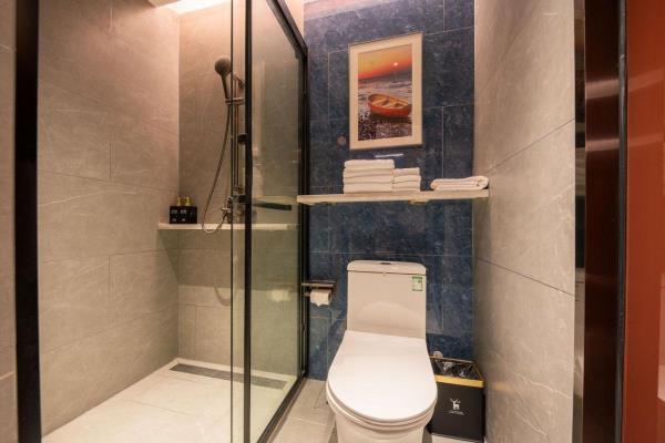 卫浴设施:浴巾、雨淋花洒喷头、淋浴、私人卫生间、毛巾、拖鞋、24小时热水、私人浴室。仅部分房间具备:、吹风机