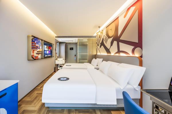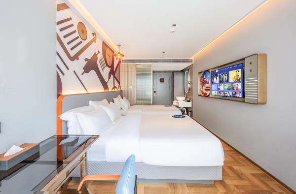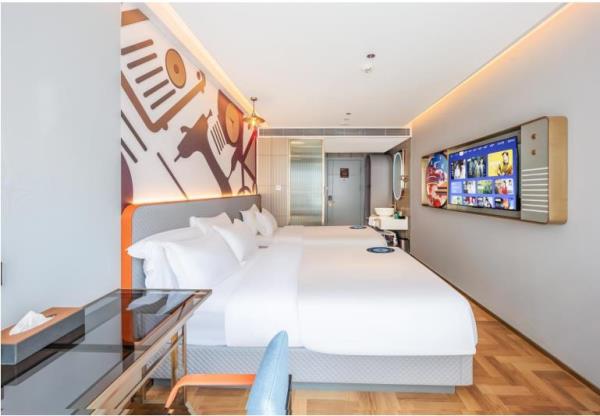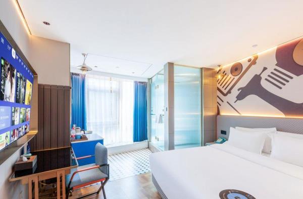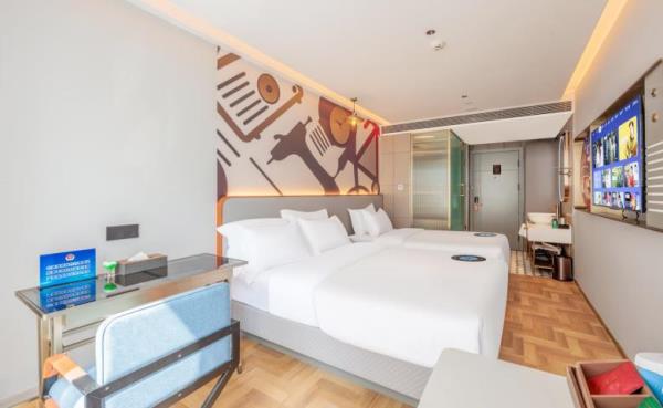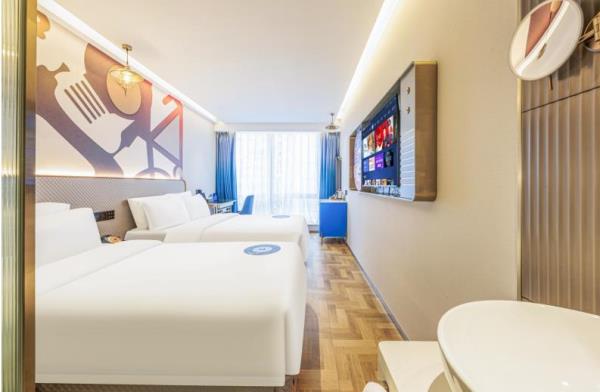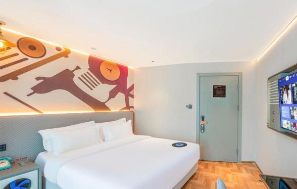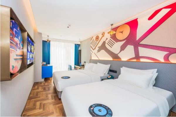 酒店位于朝阳区外交部南街10号万邦商贸大厦3-5层,位于建国门及朝阳门商圈核心位置。距离地铁朝阳门站及建国门站步行约15分钟均可到达。酒店距离首都儿研所步行约3分钟,为满足儿研所就医需要酒店设置有多间家庭房供您选择以解决陪同人员多住宿困难的问题。酒店周边范围内坐落有华润大厦、亚太写字楼、凯威大厦、雅宝大厦、天雅大厦、兆泰国际中心、银河SOHO等多座写字楼商务中心,步行10分钟以内均可到达,是您商务出行的不二选择。酒店地理位置优越交通便利。朝阳门商务区、建国门商务区及使馆区多家大使馆、法签中心与酒店步行均在15分左右即可到达。三里屯、工人体育场、王府井距离酒店车程约10分钟。天安门、簋街、天坛、南锣鼓巷等距离酒店车程约30分钟。酒店 以“音乐文化酒店”为品牌定位,向用户传递“取悦自我”的价值主张,为Z世代的新进中等收入商旅、情侣人群提供“文化、舒适、惬意”的品牌调性,以“场景、品质、功能、服务”为卖点,通过“多重组大堂、24小时洗衣仓”等硬件设施组合,“一心服务”的服务理念,让顾客在旅途中享受“乐在其中”非凡的住宿体验。
