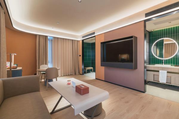 【位置】:天津市武清开发区北财源道北侧大自然广场2号楼 位于武清开发区内 【周边商城】:综合型购物商场 大光明中心、武清百货。。 【高速路口】:距离S40京津唐高速进出口5分钟左右即可到达。 【天津站】:酒店出发30分钟到达 【武清站】:打车10分钟左右可到达,武清站可乘坐城际列车22分钟达到北京南站,15分钟到达天津站 【景点】:打车10分钟左右可到达佛罗伦萨小镇休闲场所。 【周边饮食】:大光明中心,荔隆广场,万达广场都有美食供您选择 【酒店配置】:Wifi全覆盖,配套有电梯、自助早餐、24小时自助洗衣(烘干、挂烫机)房、寄存箱、客房机器人服务、同时提供24小时前台服务、快速入住/退房免查房、外卖接收、机器人无接触送餐服务。并且这里有多种不同规格的客房供您选择,每件客房拥有独立电视信号源、65寸液晶电视、干湿分离的卫浴设计、24小时供冷热水和空调保障,经过一座城,寻觅一间房,我们准备了一个冬暖夏凉的栖息港,诚挚的期待您的到来。