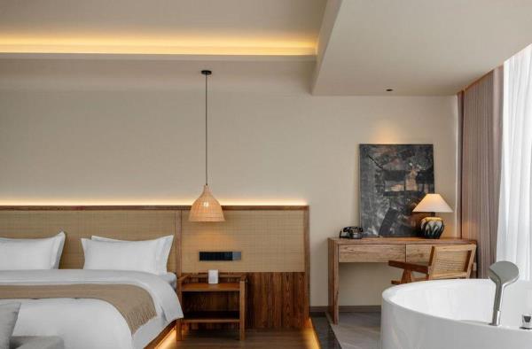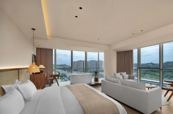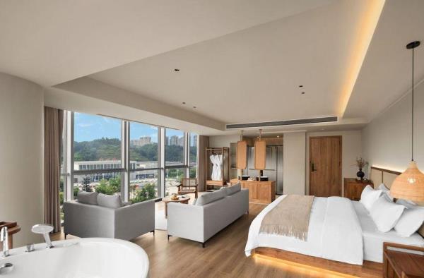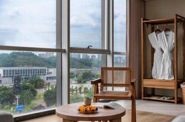 欢迎来到我们独具特色的酒店,这里不仅是一个舒适的休息场所,更是您探索乐山美丽风光的理想起点。酒店位于乐山高铁站附近,步行仅需5分钟,让您轻松畅游乐山,尽享便捷之旅。 自然与舒适的完美结合 酒店致力于为您打造回归自然的居住体验。客房内采用全屋原木家具,营造出一种宁静、自然的氛围。高品质鹅绒被、鹅绒枕等床品,让您在喧闹的城市中也能感受到家一般的温暖与舒适。 私享汤浴与美食时光 为了让您充分放松身心,我们特地在客房内配备了私汤。在私汤的浸泡中,您可以忘却一天的疲惫,享受身心合一的宁静时光。此外,我们还提供精美的早餐和下午茶服务,让您在品味美食的同时,感受生活的美好。 完善的配套设施 除了舒适的客房和美食,酒店还配备了一系列配套设施。现代化的洗衣房为您提供便捷的洗衣服务,让您的衣物始终保持清新整洁。此外,我们还设有健身房,让您在旅途中也能保持健康的体魄。 探索乐山之美 作为乐山地区的热门旅游目的地,这里拥有众多美丽的自然风光和丰富的文化底蕴。您可以游览著名的乐山大佛,感受千年古刹的宁静与庄重;也可以漫步在峨眉山间,欣赏秀美的山川景色。酒店将为您提供最贴心的服务,助您轻松探索乐山之美。 在此,我们诚挚地邀请您莅临我们的酒店,享受一段难忘的旅程。我们期待与您共同探索乐山之美,为您的旅行留下美好的回忆。