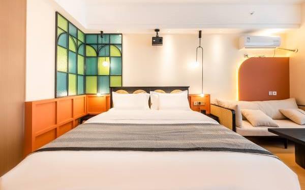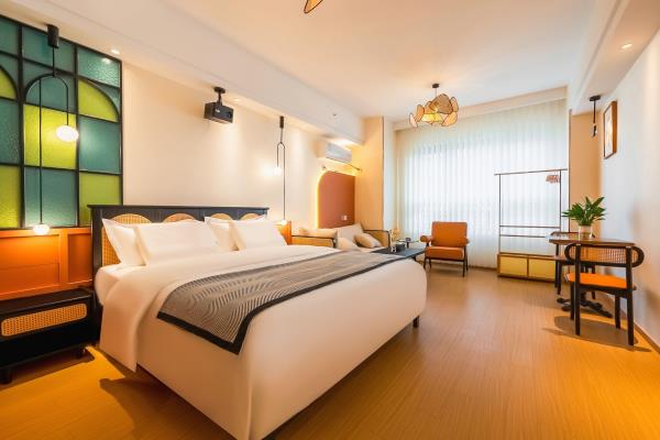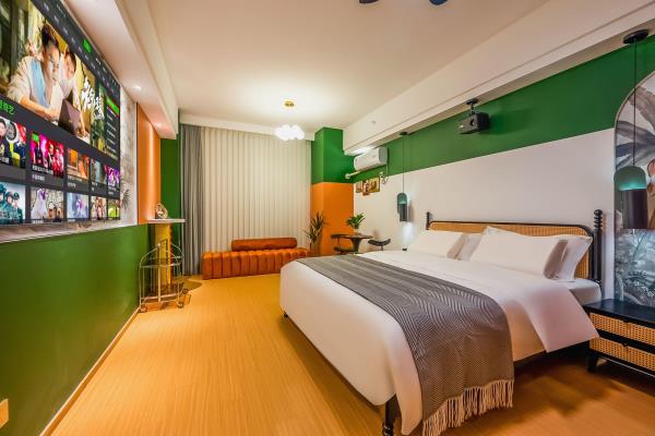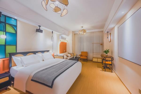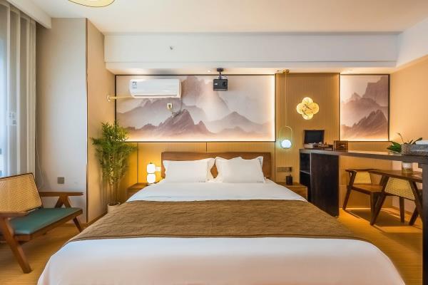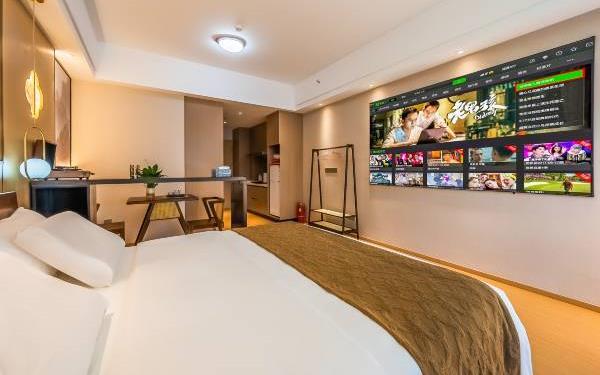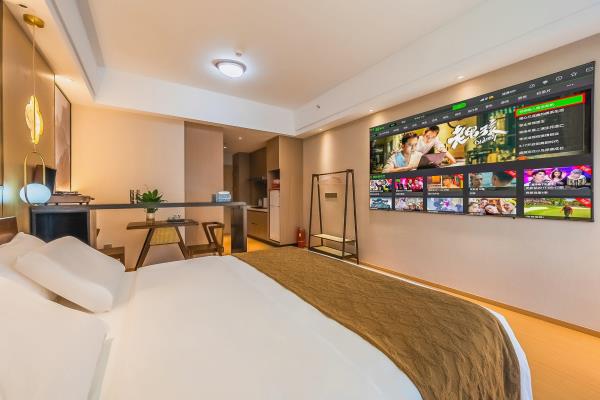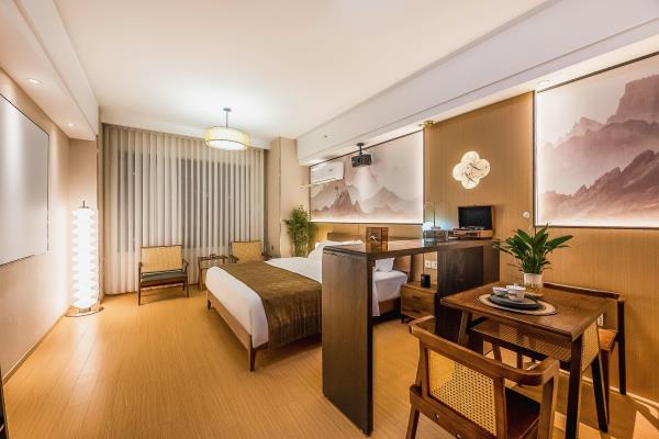 【苏州科技城核心政务商圈】门店位于高新区(虎丘区)科技城科业路星悦雅阁9楼。周边有国家火炬计划器械特色产业基地,“国家知识产权服务业集聚发展试验区”。苏州高新区行政服务中心,高新区管委会,高新区知识产权服务中心。 【多房型丨多选择丨多舒适】门店有出差,商务,情侣,举家出游所需房型,设计师在高品质与温馨之间酝丝良久,打造符合现代人出行休憩的梦中情房。房间配实木家具,沙发,书桌,餐桌,休闲办公两不误。每间房独立配冰箱洗衣机,告别传统洗衣房。电器,洁具均品牌。 【安心享睡丨零压助眠】门店房间配备了星级品牌梦百合28cm零压助眠床垫。高星酒店同款高支棉面料床品。梦百合记忆棉睡枕。爱奇艺影音会员,千、万部电影随意观看。小米蓝牙音箱,助眠音乐随时播放。 【卸下背囊丨舒展身心丨游山玩水】距门店约步行15分钟有诺贝尔湖公园,骑行,散步都可选。约6~18分钟车程有大阳山国家森林公园,大阳山植物园,苏州乐园森林世界,苏州乐园水上世界,树山景区,苏州太湖国家湿地公园。小众名胜古迹有五龙山,云泉寺等。网红打卡地有彩石湖公园。 【饕餮盛宴丨尽在咫尺】门店距离科技城繁华商场星悦里商场很近,梦之城购物中心,绿筑商务广场周边范围约4分钟车程。 【交通便利丨停车方便】距科业路天佑路公交站约步行3分钟,距有轨电车2号线白龙桥站约步行15分钟。8分钟可达天池山收费站。10分钟可达中环西线,直达苏州核心城区。20分钟可达苏州新区高铁站。27分钟可达苏州火车站。门店地库停车场,约有100车位。 【管家式服务丨不满意您说】以人为本打造符合现代人出差旅游休憩的房间,温馨,浪漫,舒适,实用,具有性价比。有任何不满意可随时提出,尽全力解决。顾客的不满意是我们前进的动力。