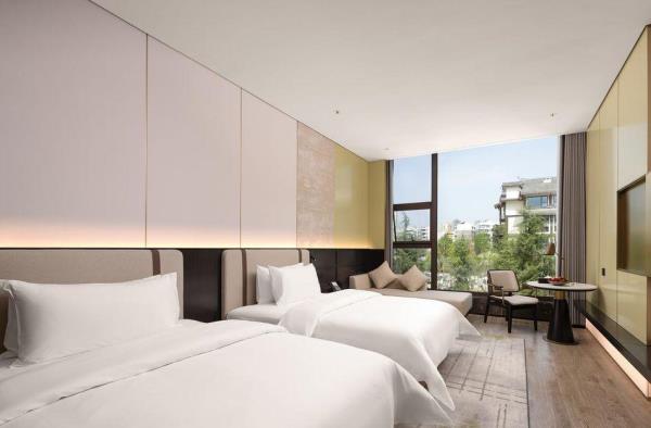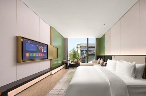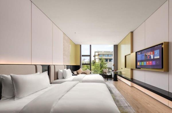 潼禧云晶酒店以其独特的中式建筑风格与现代元素完美融合的园林式环境而闻名。不仅地理位置优越,交通便捷,更是在繁华都市中独辟了一处宁静致远的世外桃源。酒店设施完备且布局精巧,大堂吧宽敞明亮,为宾客提供舒适的休憩空间和精致的饮品服务;早餐厅供应丰富多样的中西式早餐,满足不同客人的口味需求。此外,酒店还设有各类规格齐全的会议室和宴会厅,无论是商务洽谈还是举办各类庆典活动,都能确保活动的成功举行。 酒店共有两栋独立楼体,其中A栋拥有雅致舒适的客房,B栋则设有精心设计的房间,每间客房均配有高品质设施,营造温馨如家的居住体验。不仅如此,酒店还特别配备有豪华别墅,以尊贵私密的空间格局,为高端客户打造舒适奢华的下榻享受。