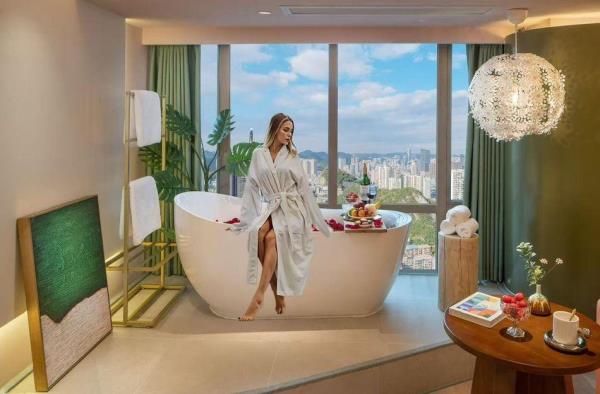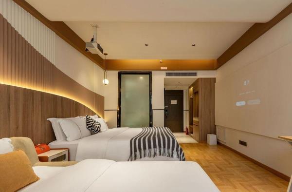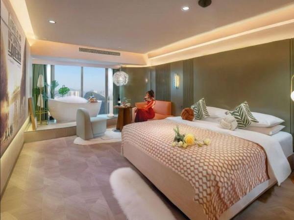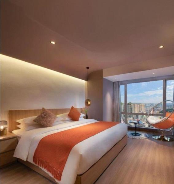 酒店名字源于:宋辛弃疾的《青玉案--元夕》诗句中-----众里寻他千百度。蓦然回首,那人却在----灯火阑珊处!酒店有5个区域:1.餐厅\咖啡吧\酒吧,2书吧,3茶吧.4接待大厅。酒店提供打字复印,共享办公,小型会议等。酒店房间提供坚果投影(电影全免费),橡胶床垫,小度智能客控房间,部分房间停车报一半或停车全免费,独立房间高速网络。酒店地理位置优越:酒店位于贵阳市南明区花果园中央商务区,地处市内一环交通便利紧邻地铁松花路站b站出口,到贵阳北站,贵阳东站,贵阳站和机场都非常便利。距花果园购物中心及花果园湿地公园/双子塔仅一步之遥,距市中心喷水池、大十字繁华地段约5分钟车程,紧邻BRT花果园站;距离全国较大的市内森林公园黔灵公园和贵阳小车河国家湿地公园、甲秀楼风景名胜区、阳明祠等约5分钟车程。到各个旅游景点如小七孔,黄果树瀑布,西江苗寨都有直达车。酒店理念:这是一个城市民宿,既有贵州这个城市的烟火气息,更有一个舒适的入住环境,楼下是烟火,楼上是舒适安宁。下楼就是贵州的人文环境,上楼就是一个舒适的咖啡吧。您入住的是一个图书馆,一个放松地,累了,在酒店房间可以看电影,也可以在公区玩一天。一群人吹牛。在这里你不是一个人,是一群你可以倾诉,依靠结交的人。酒店是一个高空观景酒店,在这里你可以和朋友畅谈,撸猫,小酌,可以共享办公,孩子可以看书,自由玩耍,品茶,一杯咖啡一本书暖暖的太阳下,一下午过去了,还可以通过住酒店结识更多的志同道合的朋友。
