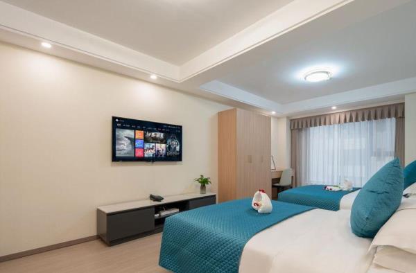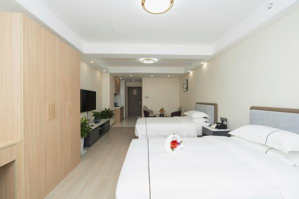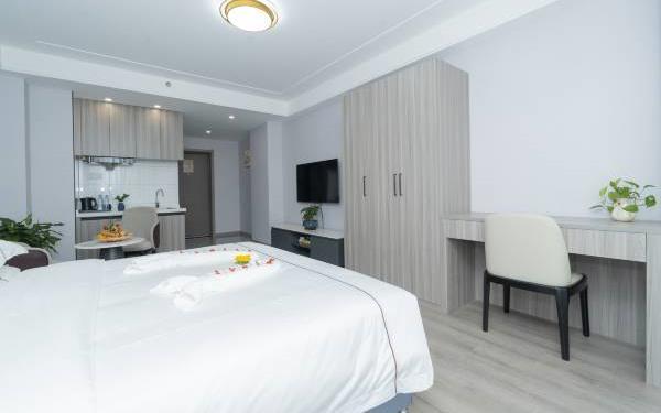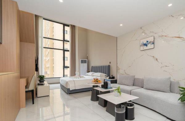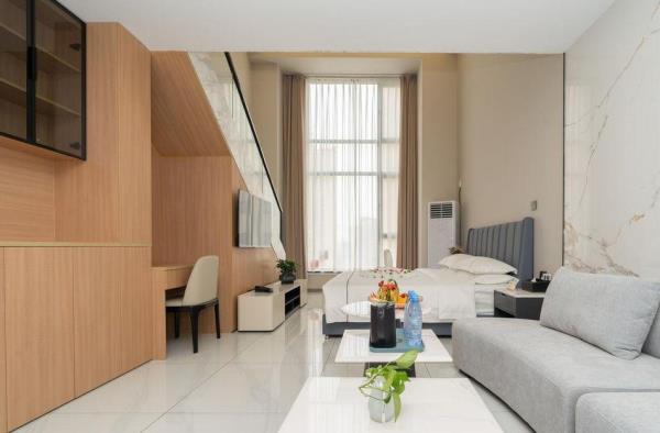 西安广成商旅公寓酒店坐落于繁华的龙首村商圈,以其独具时尚和精致简约的装修风格,细致周到的人性化服务,为商旅人士和旅行家提供舒适的商务旅行体验。酒店不仅提供舒适的住宿环境,更以其优越的地理位置和丰富的配套设施,为宾客带来别样的入住体验! 【地理位置】酒店位于西安市北二环城北客运站对面,周围休闲娱乐、景区景点、购物中心等一应俱全,地理位置优越,交通十分便利,为宾客提供便捷舒适的居住体验。酒店距离西安龙首印象城驾车大约仅需要9分钟,盛龙广场驾车大约仅需要7分钟等多个购物中心,并且距离西安城墙·碑林历史文化景区驾车仅需要28分钟、大明宫国家遗址公园驾车仅需要7分钟、汉城湖旅游风景区仅需要7分钟,等多个旅游游玩圣地,满足您购物、休闲和观光游玩需求。周边步行就可以到达大明宫西地铁站,驾车约17分钟可以到达西安站,方便您快速前往各大景点和商务区域,不再为匆匆赶车而烦恼! 【酒店设施】定位为舒适型休闲酒店,提供高品质客房与贴心服务。房间设计现代简约,智能化设施完备。采用进口智能门锁,保障安全。客房宽敞明亮,配备优质床品、遮光窗帘、独立格力品牌空调、独立卫浴。入住即享免费赠水等小惊喜。每个房间内都配备了厨房和抽油烟机,只需自带厨房用品即可使用。这样,您既可以享受到自己制作美食的乐趣,又能确保烹饪过程的安全。上前台可领取针线包,满足您的不备只需。配备餐厅、健身房、会议室,满足休闲健身需求。酒店还配备盲盒类型的卡通主题儿童房、LOFT套房型、家庭套房以及蜜月房,特殊房型,满足不同群体的需求。提供24小时管家服务,随时准备为您服务。所有客房均设有大落地窗,夜晚可欣赏城市夜景,享受宁静与繁华的双重体验。提供提前入住、延迟退房、免费升级房间等增值服务。 【文化理念】酒店秉承“贴心服务,家的温情”服务理念,以情服务,用心做事的服务宗旨,情满广成的服务品牌。以日租、短租、长租相结合的经营模式,全力为旅游、商务人士打造经济型、实惠型、舒适型的栖息场景。让您在匆匆前行中也能享受舒适,浪漫之旅!