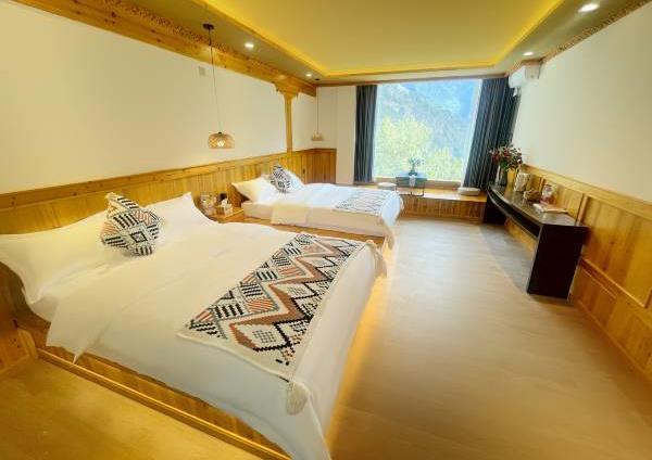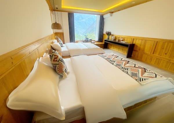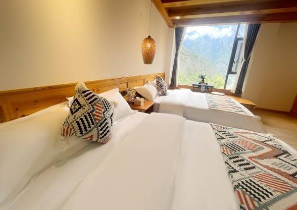 山舍以其独特的地理位置和热情的服务赢得了大多数用户的高度评价。民宿位于中路藏寨半山腰,视野开阔,房间内的大落地窗可直面墨尔多神山,早晨的云雾和夜晚的星空让人流连忘返。房间干净整洁,设施齐全,尤其是榻榻米和观景窗的设计深受喜爱。