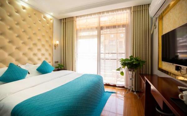 环境不错,很干净,没有在主干道街上,相对比较安静,但有附近的小孩子晚上在外面街上吵闹到12点,睡着都被吵醒了,一楼可以吃饭,有点小贵,但味道还不错。门口可以停车,老板会给你找好停车位。没有早餐,楼下对面有早餐店。景区附近的房间算性价比很好的了。 阳台大床房2019-07-24