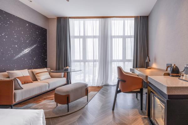 便利设施:WIFI、空调、沙发、空气净化器、220V电压插座、多种规格电源插座、自动窗帘、衣柜/衣橱、书桌/工作区、餐桌