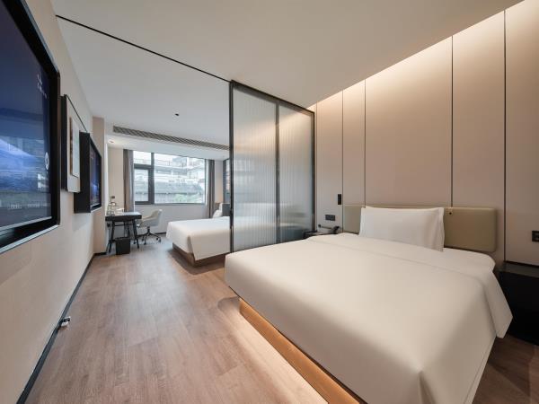 南京是我国历史文化名城,六朝古都,十朝都会,钟山龙蟠,石城虎踞。而夫子庙是南京非常绚丽的一张名片:十里秦淮烟火灿,夜泊秦淮,梦回金陵。 南京夫子庙秦淮游船码头酒店坐落于国家5A级旅游景区南京夫子庙核心区域,紧邻秦淮河,位于南京秦淮夫子庙大石坝街35号,店处夫子庙美食步行街内,临近地铁3号线2号出口,周边商业繁华,吃喝玩乐一应俱全,夫子庙景区尽收眼底。进门是享受,出门便是风景~ 亚朵,一家舒心的微笑公司,提倡人文、温暖、有趣的“在路上”第四空间生活方式。酒店高品质的客房产品设施及细致温馨的服务,带给您“自然、静谧、温暖、朴实”的健康生活方式。所有客房均采用堪比星级酒店的普兰特系列优质床品,中央空调,全套萨和高端系列洗护用品,200M高速光纤,全WIFI覆盖。 酒店的设计理念设计理念是以阅读和人文摄影为主题,为高品质的客房产品设施、细致温馨的服务注入浓厚的人文氛围,独具“自然、静谧、温暖、朴实”的气质,为商旅人士打造理想的住宿体验。 酒店设有餐厅(相招)、24h健身房(汗出)、免费洗熨烘干自助洗衣房(出尘)及超大阅读会友书吧(竹居),为您提供一个自在、放松的居停空间。在这里,能够休憩、充电、放松,是您商务出行及旅游的上佳选择。