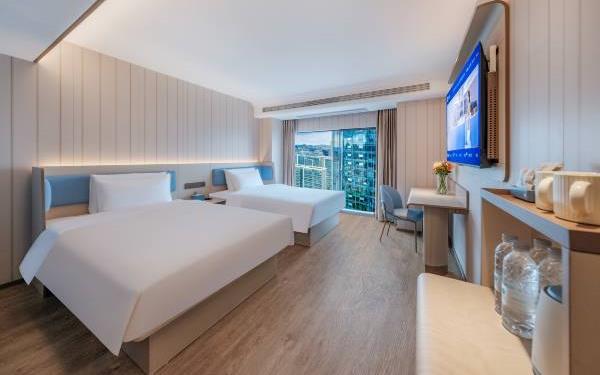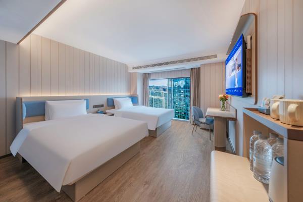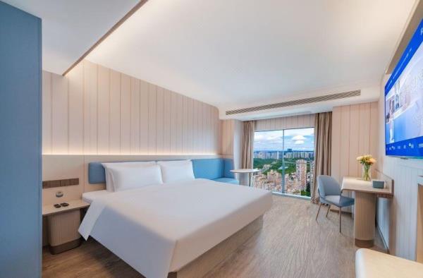 酒店位于贵阳市观山湖区金阳街道八匹马贵阳万科翡翠天骄C区,地处观山湖区核心地段。酒店紧邻贵阳奥林匹克体育中心(座位容量大约6万人,演唱会举办地)、国际会议展览中心(数博会、酒博会、大型展会)、麒龙贵州塔(地标级写字楼)、观山湖公园(音乐节、灯会)、贵阳市政府、地质博物馆、贵州省博物馆。酒店位置闹中取静,附近地铁2号线、贵阳国贸玖富城生活购物中心、万达广场(观山湖店)、红街夜市美食一条街、贵阳市第一中学、CCPAPK网红街、云上方舟、贵阳喀斯特公园、阅山湖湿地公园(户外露营地)、贵阳欢乐世界及泉湖公园、金阳医院(二甲医院)等生活休闲配套。距离贵阳北站预计16分钟路程,距离贵阳东站预计26分钟,距离贵阳龙洞堡机场预计40分钟路程,距离金阳客车站预计20分钟路程。酒店一楼大厅商务办公区、自助咖啡饮料区,十二楼自助早餐厅(汉庭特色解忧豆花,贵州特色辣子鸡粉面、糯米饭)、自助洗衣房(洗衣机、烘干机、挂烫机等配套设施);酒店为华住集团汉庭3.51版本,高颜值、自助化、便利易操作将成为十四亿国民的远亲与近邻!
