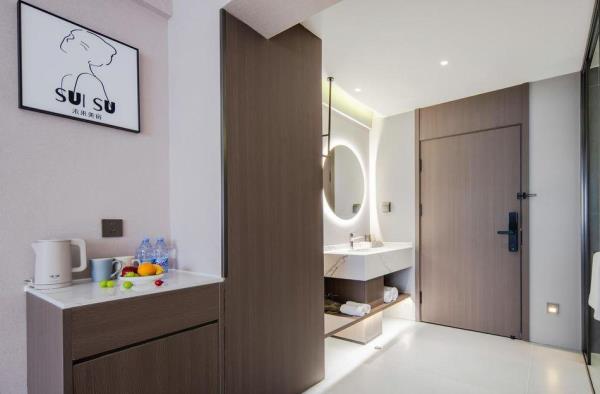本店,南长街,拈花湾,鼋头渚,灵山大佛等旅游景点均比较近,酒店处于宝龙广场商圈内,靠近旺庄地铁站出口,十几分钟即可到达无锡机场,酒店全屋智能,手机扫码入住,手机扫码退房,全程无人接触,房型多样,亲子房,大床房,按摩椅,大沙发等一应俱全。
