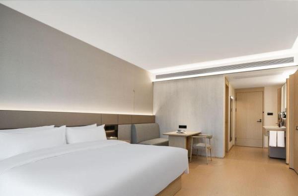 酒店是珠海5.0版本的全季酒店。始终秉承”为中国人设计,让外国人体验“的品牌初心,从东方智慧中汲取人文精神,从当代生活中提炼价值内涵。全季5.0设计升级中以朦胧留白的视觉感受、人文意趣的艺术作品、好闻的禅茶春氛、自然的音乐,营造出一种自在松弛的氛围感。不仅将苏轼词中的山水意境搬进了酒店,带来更为现代、写意的审美满足,更为每一位步入全季的客人营造出其独有的人文感知,在【但远山长,云山乱,晓山青】的豁达诗意中觅得一山一水一隐世的住宿体验。