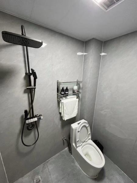 卫浴设施:浴巾、雨淋花洒喷头、淋浴、私人卫生间、毛巾、拖鞋、24小时热水、私人浴室