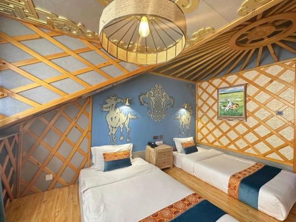 神飞庄园坐落于额尔古纳市黑山头镇,环境宜人,交通便利,是您商务出行、休闲旅游、聚朋会友的首选之地。是一家集住宿、餐饮、娱乐、会议为一体的豪华庄园。全部按国家星级标准设计建造,主楼占地2800多平方米,其装修融草原风格和时尚设计为一体。庄园共有豪华楼房客房,楼房蒙式特色房,传统豪华蒙古毡包,特色蒙古砖构包,特色亲子蒙古包,酒店卫生间干湿分离(热水非24小时),蒙古包设有独立卫浴。配有卫星电视、高速宽带、进口卫生洁具以及空调系统。神飞为了能给您家的舒适与温馨,我们保持酒店一客一换。蒙古大帐可容纳300余人,配有先进的音频、视频设备,可为您提供各种形式的就餐服务、会议洽谈。周边同时设有6个独立用餐豪华蒙古包间供您选择。神飞庄园可提供纯正的蒙古手把肉、鲜美的河鱼及特色烤全羊,神飞烤全羊,吃起来酥脆香嫩,肥而不腻,品尝过这种烤全羊,齿颊久久留香,终身难忘。酒店食材来自自家农牧场,保存菜品的原汁原味。草原BBQ给你美食和美景的双重体验。在神飞庄园可以体验骑马、喂小羊、挤牛奶、射箭、卡丁车等娱乐项目,即使夜幕降临篝火晚会也能带给你草原的热情,每天晚上都让歌与舞在篝火旁交融。神飞无微不至的关心和尊重每一位顾客。真诚、热情、礼貌、周到,让您时刻沐浴归家的温馨。我们坚信,我们的服务定能赢得您的满意。神飞庄园欢迎您!