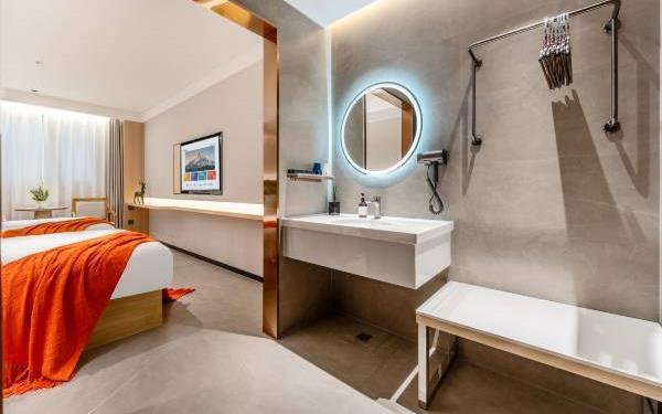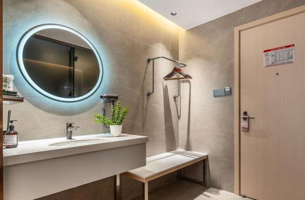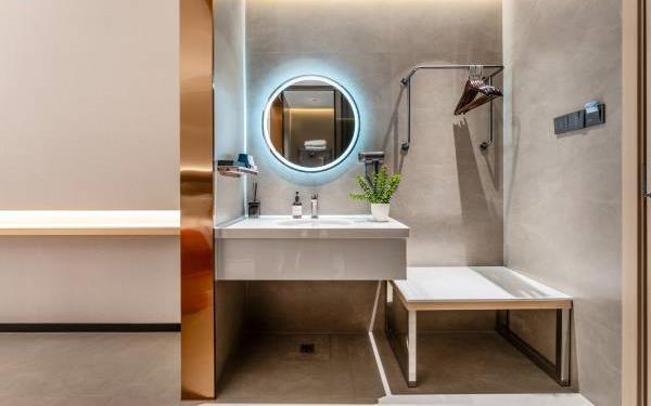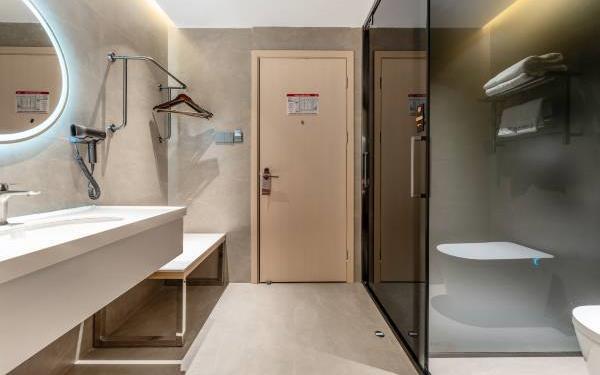 卫浴设施:淋浴、私人卫生间、毛巾、拖鞋、浴室化妆放大镜、24小时热水、私人浴室、浴巾、雨淋花洒喷头、智能马桶。仅部分房间具备:、吹风机