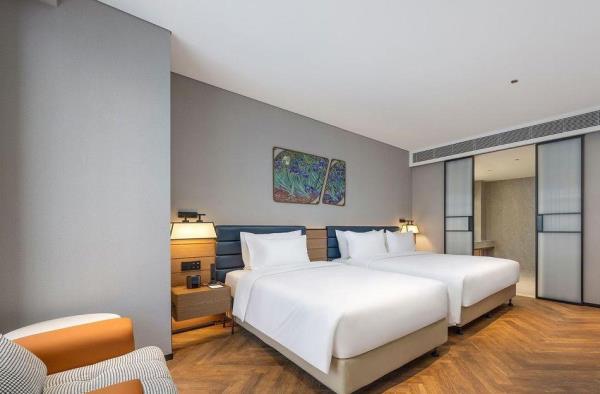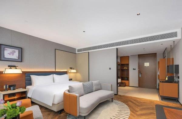 青岛中建锦江郁锦香酒店地处青岛高新区核心区域——乐融路18号,地理位置优越、交通设施完善,酒店周边环绕青兰高速、济青高速、跨海大桥,可快速抵达青岛市各个区域。酒店配套:自助餐厅、中餐包厢、大堂吧、健身房、洗衣房、免费停车、机器人服务,可容纳50-120人不等的多功能会议室3个。大型商场:首创奥特莱斯,驱车10分钟即达;金茂览秀城驱车13分钟即达交通枢纽:胶东国际机场,驱车26分钟即达;红岛火车站,驱车16分钟即达;青岛火车北站,驱车26分钟即达。学校:青岛工程职业学院,驱车6分钟即达;青岛农业大学,驱车37分钟即达医院:青岛市海慈医院,驱车4分钟即达;青岛市城阳区第二人民医院:驱车5分钟即达。热门地点:青岛国信会展中心(红岛馆),驱车9分钟即达;明月山海间不夜城,驱车14分钟即达;青岛方特梦幻王国,驱车15分钟即达。