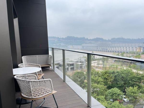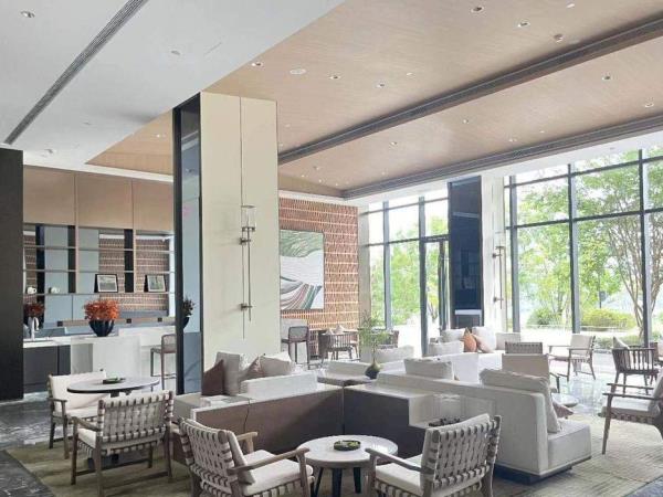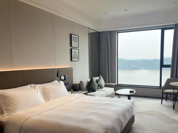 酒店位于乐山市犍为县西北侧岷江航电营地内,是航电枢纽营地酒店。酒店总占地645亩,其中酒店占地 16.95亩。122间客房依江而建,绿植环绕、鸟语花香,一线江景,是真正的‘望山望水忘烦忧’的宝藏胜地。酒店内功能齐全,集住宿、宴会、会议、健身和度假于一体。酒店定位为现代建筑与山水自然交融,不拘泥室内外的界限,以体验生活美学为内核的轻度假酒店。
