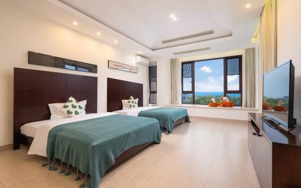 室外景观:花园景、庭院景。仅部分房间具备:、海景、湾景