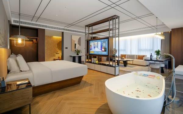 卫浴设施:私人卫生间、浴巾、毛巾、拖鞋、浴室化妆放大镜、24小时热水、私人浴室、智能马桶。仅部分房间具备:、浴衣、浴缸、吹风机