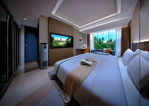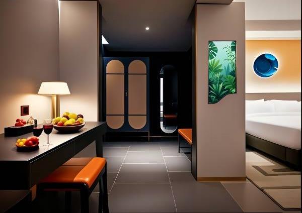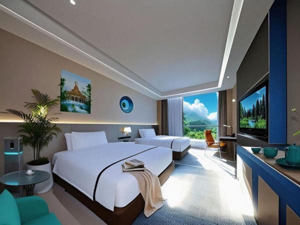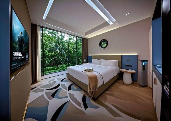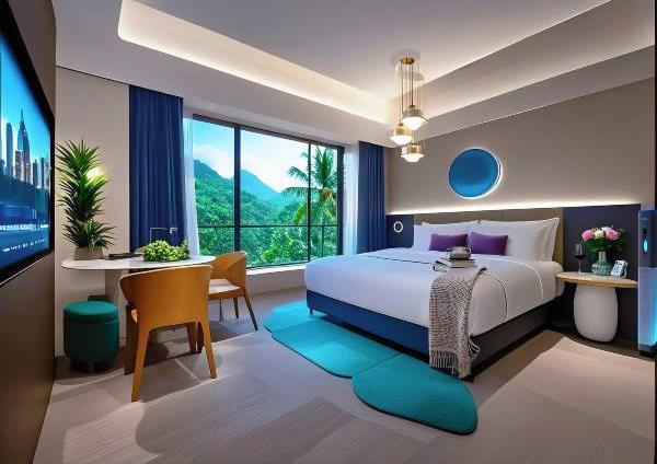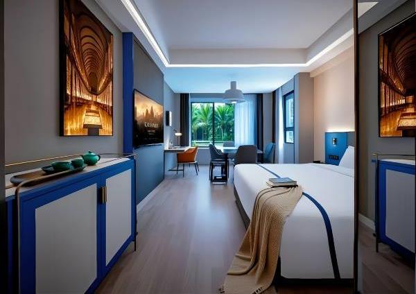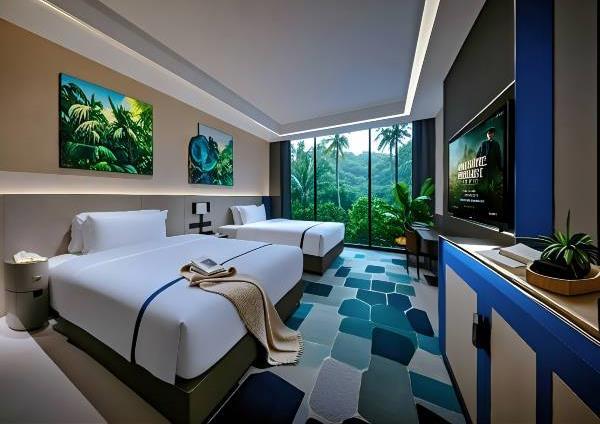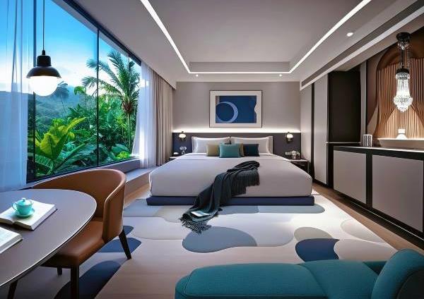 酒店位于西双版纳傣族自治州景洪市曼弄枫片区景帕航路12号雨林澜山五期229栋1-104号。酒店设有精致客房、餐厅、泳池、SKYBAR、免费停车场、充电桩、有氧健身房、高空瑜伽房、桌球室、儿童游乐园、会议室、共享洗衣房,提供优质的住宿体验。酒店以建设精致品质,将本地的建筑特⾊与孔雀形态融⼊了⻔头,丰富了⽂化内涵和艺术⽓息。整体大堂的设计借鉴了Art Deco装饰艺术⻛格,把复古与当代设计进⾏碰撞,形成历久弥新的、有戏剧感的空间,拥有独特魅⼒的“住程国际”⽣活⽅式来到热带,ART DECO与孔雀的懈惦、在⾬林的⽣态环境下,将拥有的超越的⼈⽂精神和⼒量,通过抽象的造型、艳丽夺⽬的⾊彩以及⾼贵材料的运⽤,让⻄双版纳住程国际成为⼀种⽂化的符号。酒店位于澜沧江河一侧,距离告庄西双景车程10分钟,距离西双版纳嘎洒国际机场、西双版纳火车站19分钟车程,地理位置优越!