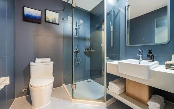 卫浴设施:私人卫生间、毛巾、拖鞋、浴室化妆放大镜、24小时热水、私人浴室、浴巾。仅部分房间具备:、吹风机