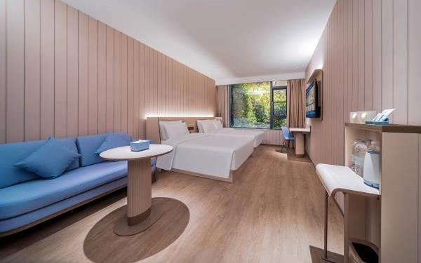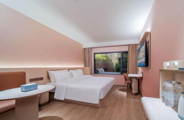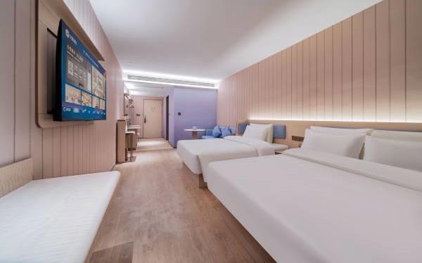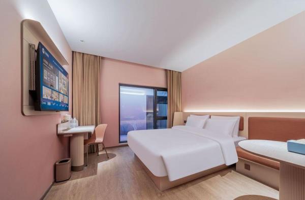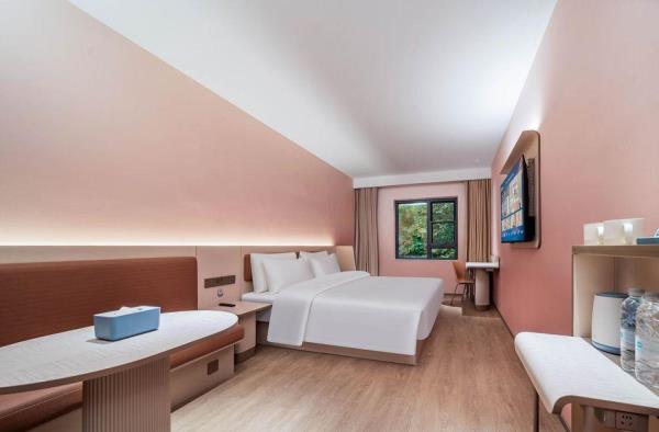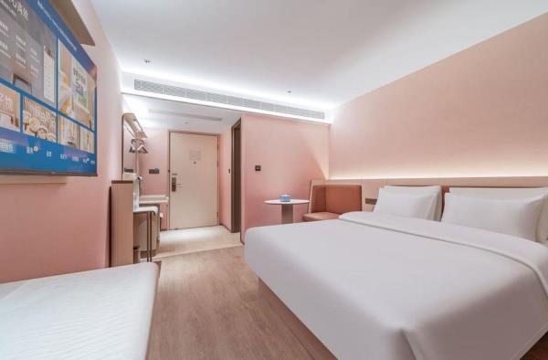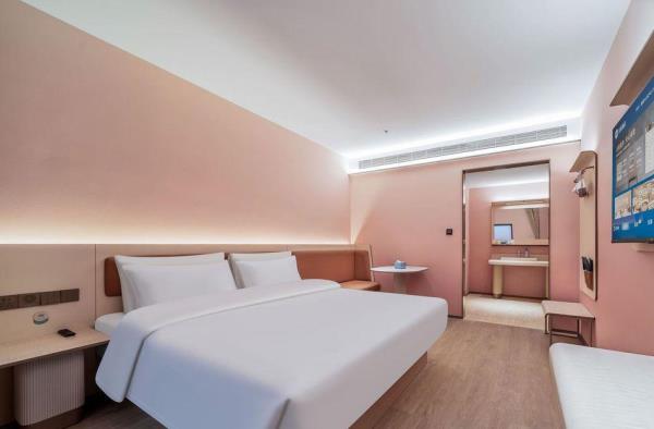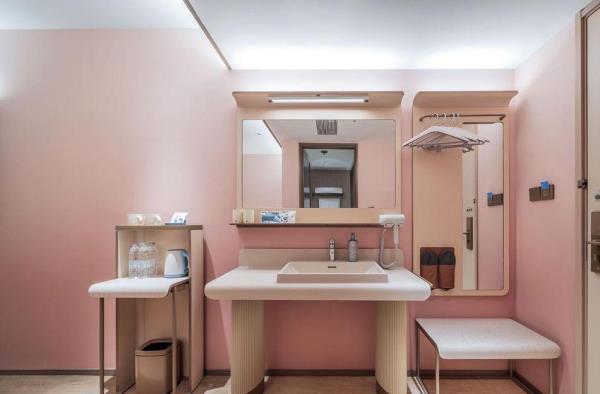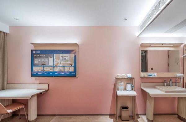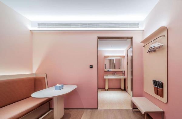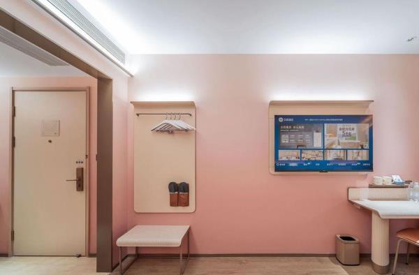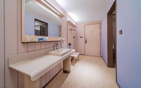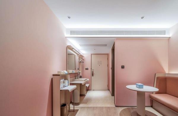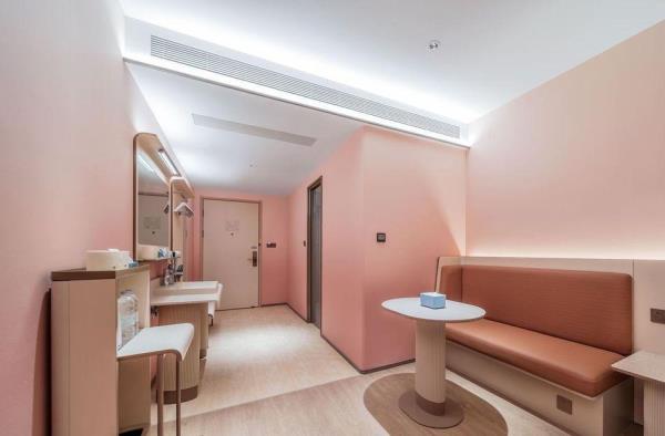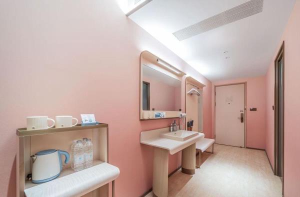 酒店位于两江新区天宫殿街道星湖路3号附26(红星美凯龙旁),全新的汉庭3.51产品,采用全新设计语言,结合深蓝、浅蓝、浅粉以及灰色再辅以流畅线条,呈现出轻松、愉悦之感。 新增六大自助服务场景,涵盖自助入住、机器人送物、洗衣等。为客人提供更加便捷舒适的住宿体验。客用品和家具舒适度再升级,符合人体工学的同时注入环保、科技理念。汉庭3.51致力于提供高颜值、好而不贵的国民酒店产品,为客人带来充满幸福感的居旅体验。