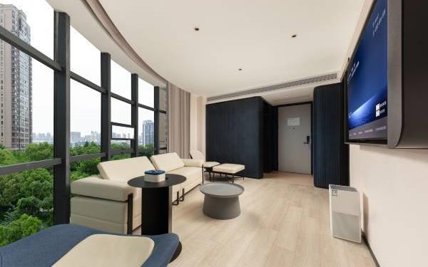 常州经开科创中心轻居酒店,作为亚朵集团旗下聚焦年轻商旅客群的核心品牌,以“轻生活、轻社交”为核心理念,致力于打造融合旅居与社交功能的新型城市空间。酒店位于常州市经济开发区东方东路79号,坐拥优越的产业区位优势,毗邻中车高铁工匠学院,与顺丰产业园为邻,为商务出行及产业交流提供便利条件。 在交通出行方面,临近宁沪高速横山收费站。距离戚墅堰站,10分钟车程即可轻松抵达,城际交通衔接高效。同时,酒店距常州中华恐龙乐园较近,驾车20分钟即可畅享欢乐时光,无论是商务出行还是休闲度假均十分便捷。 酒店以现代简约美学为设计基调,将“轻外精内”的设计哲学融入每一处空间细节,通过灵活的功能布局与智能化设施,构建沉浸式社交旅居场景。24小时开放的自助洗衣房配备高品质洗护设备,满足长住旅客的日常需求;智能服务机器人提供全天候响应,实现客房送餐、物资配送等服务的智能化升级;自助行李存储系统采用智能存取技术,保障出行的灵活性与安全性。此外,酒店精心打造的静谧阅读空间与多功能共享区域,让宾客在舒适的环境中自由探索知识,邂逅美好。 秉承亚朵集团一贯的人文精神与卓越服务品质,常州经开科创中心轻居酒店以细致入微的服务与创新体验,为现代年轻人打造兼具舒适感、温暖感与趣味性的活力社交旅居目的地,让每一段旅程都成为自在随心的美好体验。