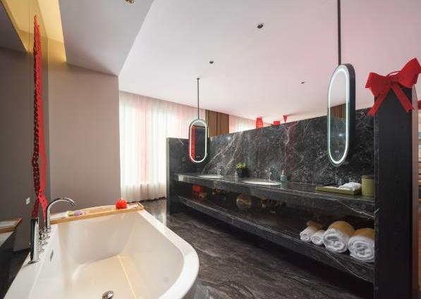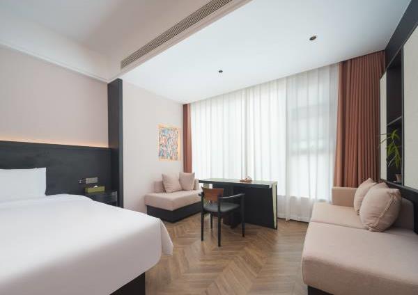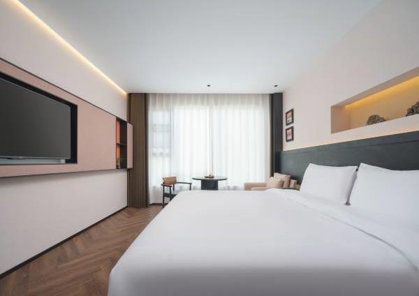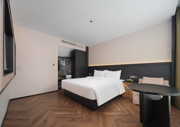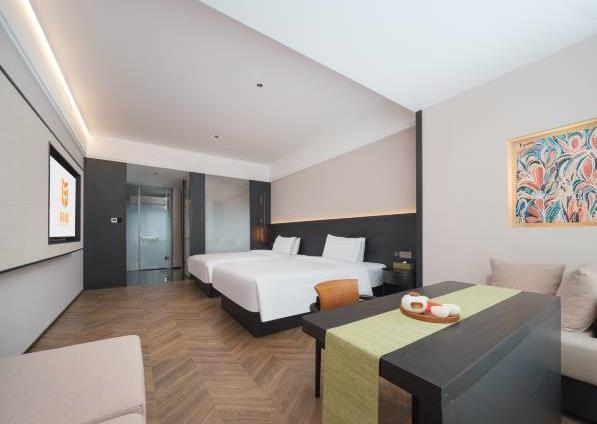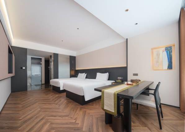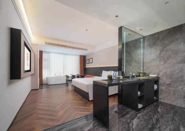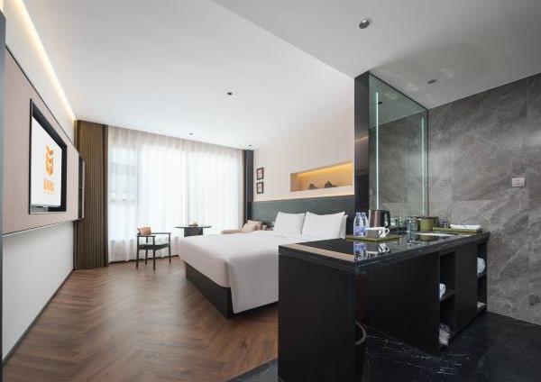 酒店拥有多套各类豪华客房,自助早餐50余种,拥有220㎡的无柱会议室,可容纳50-160人的会议接待需求。 酒店定位为设计师高端商务酒店,设计简洁大方,单房面积38㎡,56㎡,76㎡左右,全部为落地窗无暗房,接入1000M极速宽带,全屋设施智能化,小冰箱,270°观景浴缸大床房等,提供自助免费洗衣服务,健身房等。景点:中原福塔;蝶湖公园;航海体育场。交通:郎庄地铁站-B口,步行约5分钟。郑州东站,驾车约12分钟。郑州南站(新火车站),驾车约9分钟。新郑国际机场,驾车约20分钟。